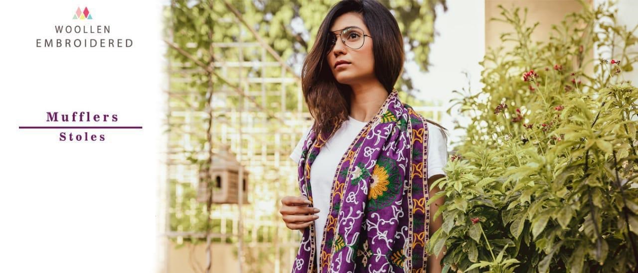 Latest Designer Muffler Collection. Exclusive Heavy Embroidery Work gives a Fashionable Look, High sensed style and luxury makes you ready for envious glazes and very rich & Royal in the Party, Function, Event etc.