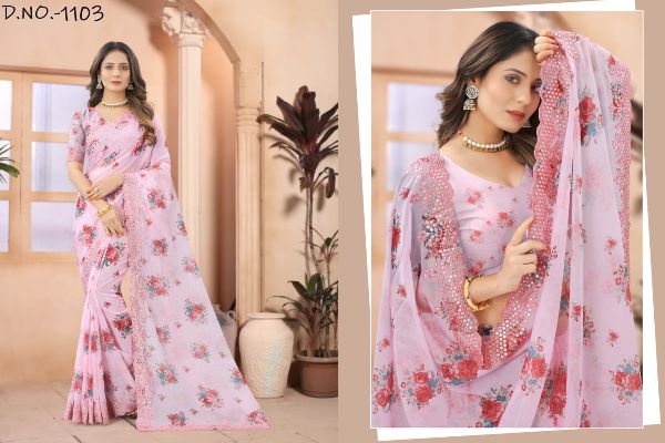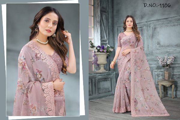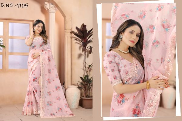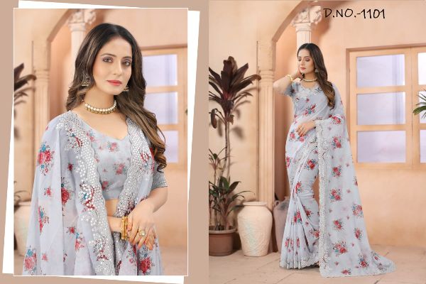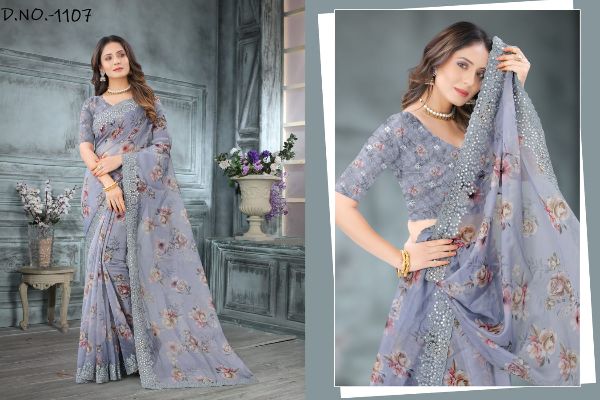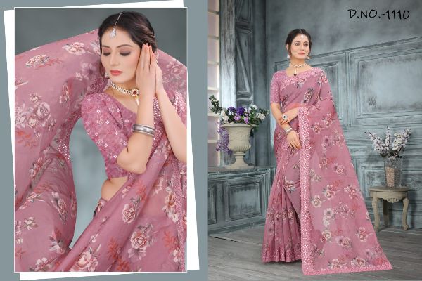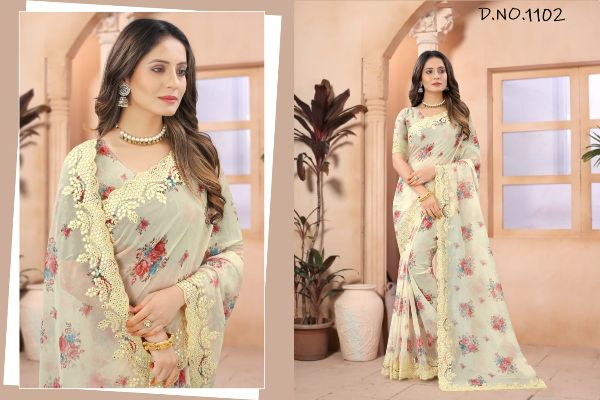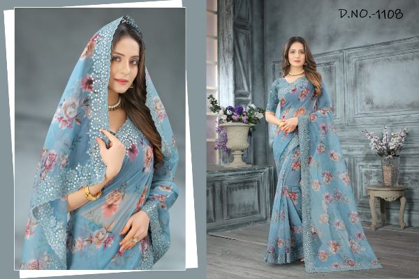 Balaji Emporium Presents Nature 1101-1110 Series Organza With Digital Print Saree Collection #1639