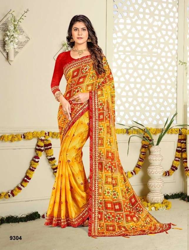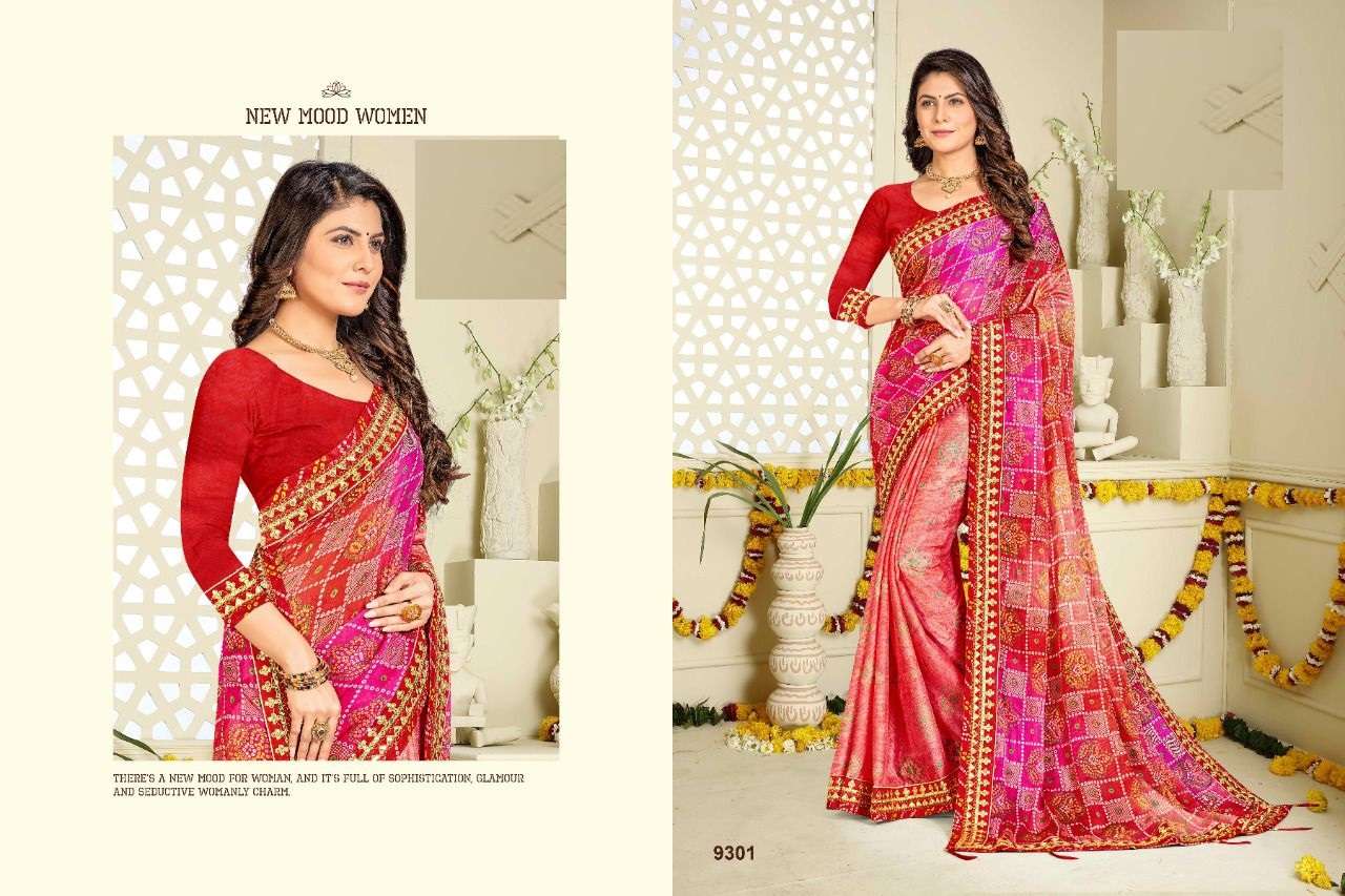 | Catalogue: | BALAJI EMPORIUM PRESENTS POOJA 9301 - 9308 SERIES INDIAN WOMEN MOSS CHIFFON SAREE SARI PRINTED CASUAL TRADITIONAL WEAR COLLECTION |
