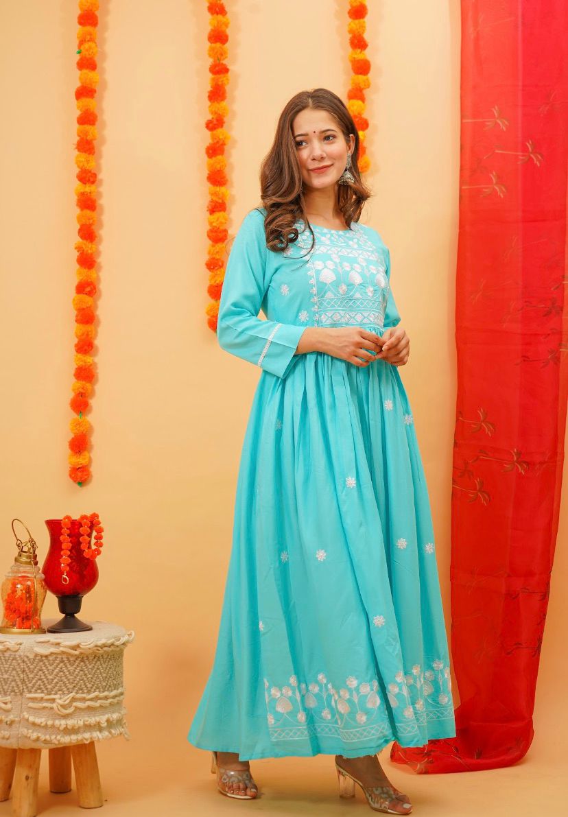Balaji Emporium Presents Premium Rayon Anarkali Kurti Detailed With Beautiful Embroidery Work With Pant Collection