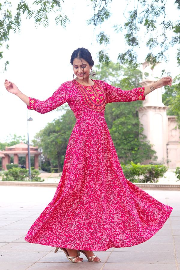 Balaji Emporium Presents Premium Rayon Flare Gown With Beautiful Block Print Long Gown Collection