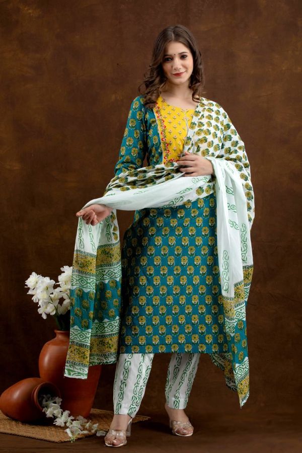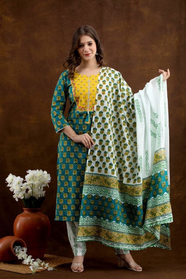 Balaji Emporium Presents Pure Cotton Kurti Pent With Malmal Dupatta Collection