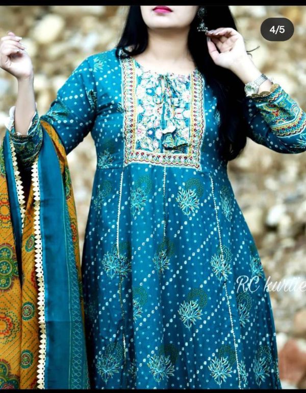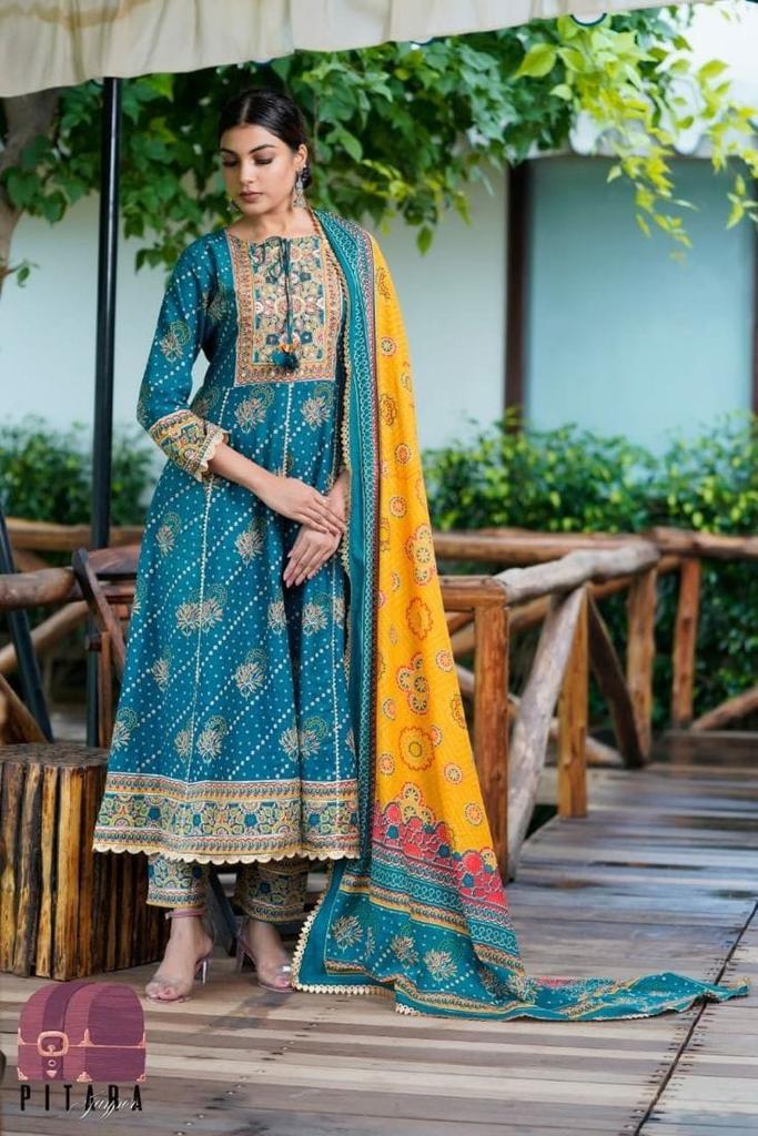 Balaji Emporium Presents Pure Rayon Straight Kurti Proceen Print With Pent And Dupatta Collection