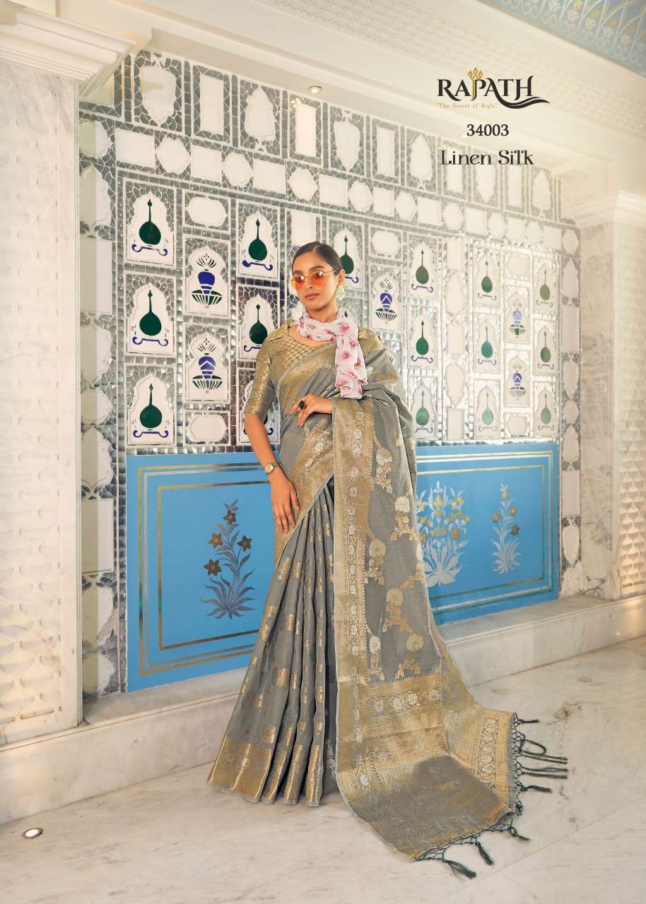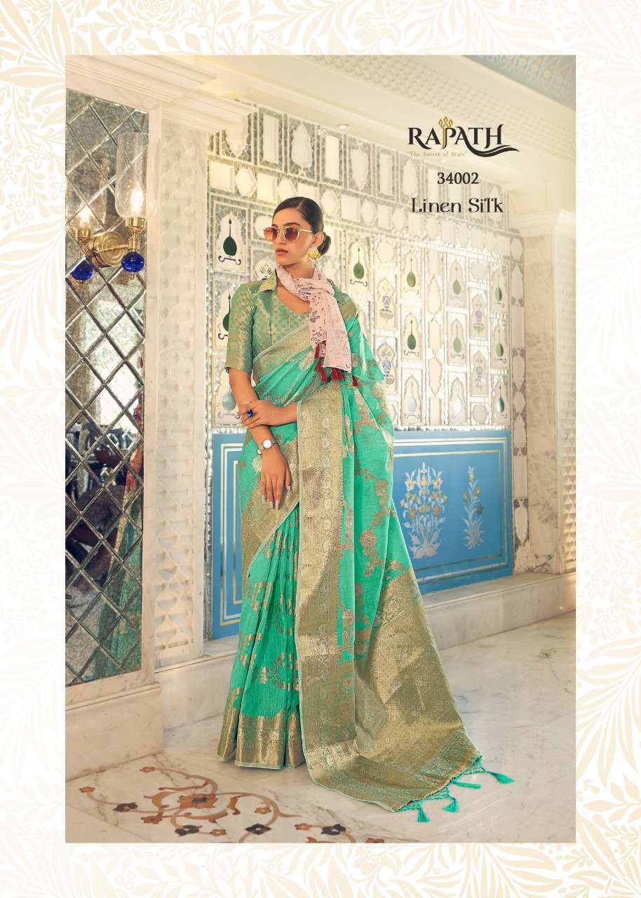 BALAJI EMPORIUM PRESENTS RAJPATH ALLIN LINEN 34001 TO 34006 SERIES SATIN SILK DESIGNER SAREES COLLECTION AT WHOLESALE PRICE N342