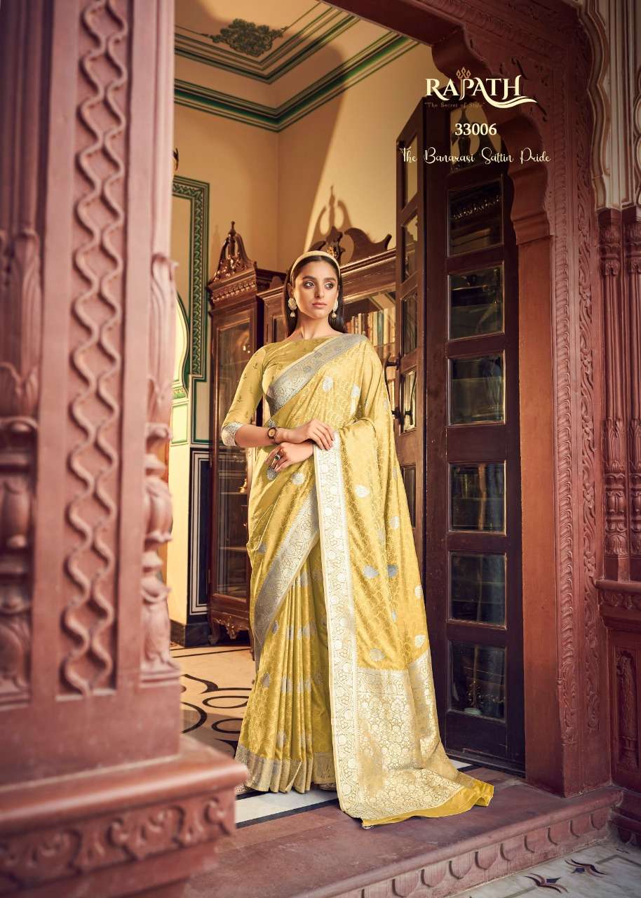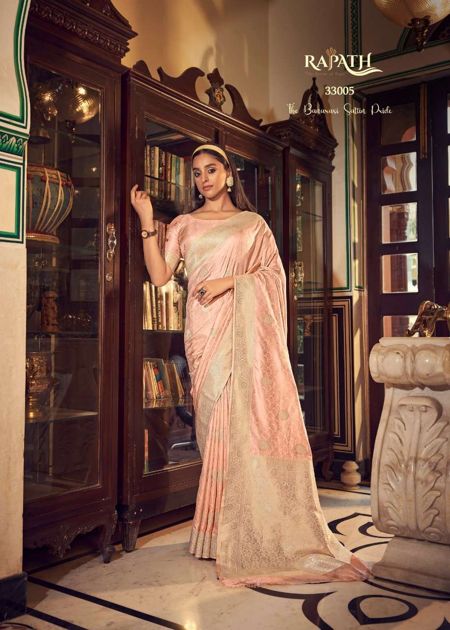 | Catalogue: | BALAJI EMPORIUM PRESENTS RAJPATH AREEN SATTIN 33001 TO 33006 SERIES SOFT SILK DESIGNER SAREES COLLECTION AT WHOLESALE PRICE N328 |