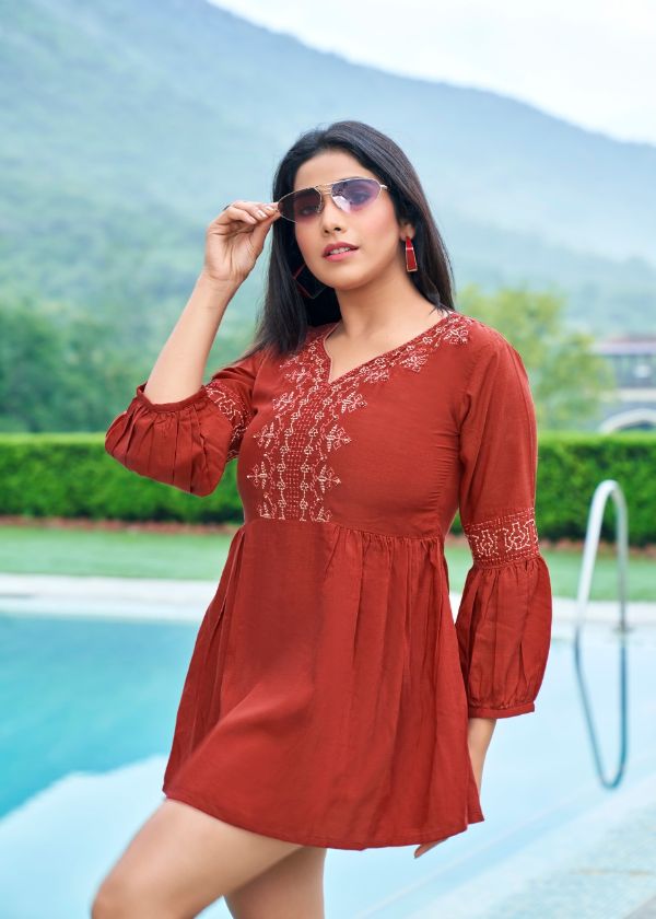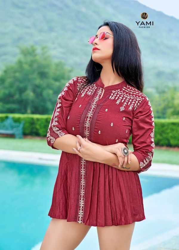 Latest Designer top Collection. Exclusive with Foil & Thread Embroidery Work gives a Fashionable Look, High sensed style and luxury makes you ready for envious glazes and very rich & Royal in the Party, Function, Event etc.