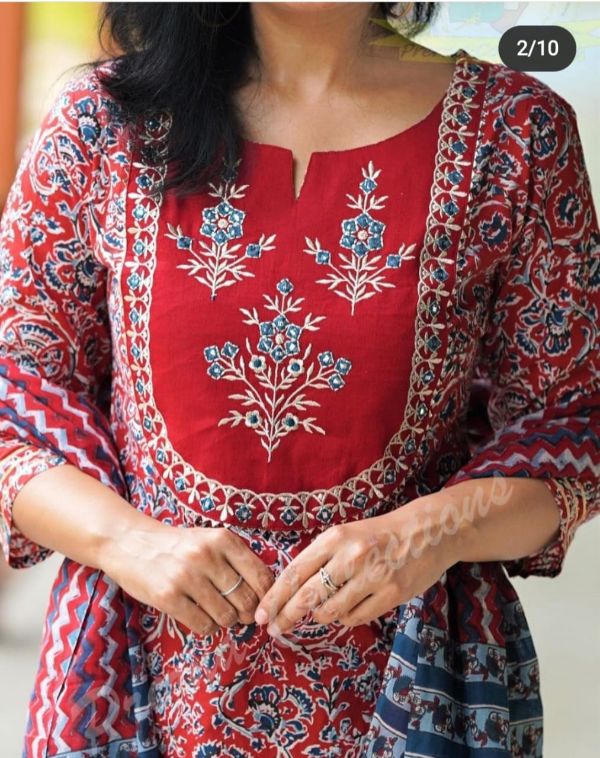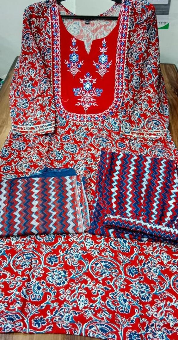 Balaji Emporium Presents Rayon Kurti Embroidry Work With Cotton Mal Mal Dupatta Collection