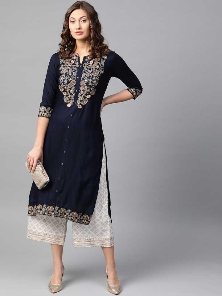 Latest Designer kurti with plazzo Collection. Exclusive with Foil & Thread Embroidery Work gives a Fashionable Look, High sensed style and luxury makes you ready for envious glazes and very rich & Royal in the Party, Function, Event etc.