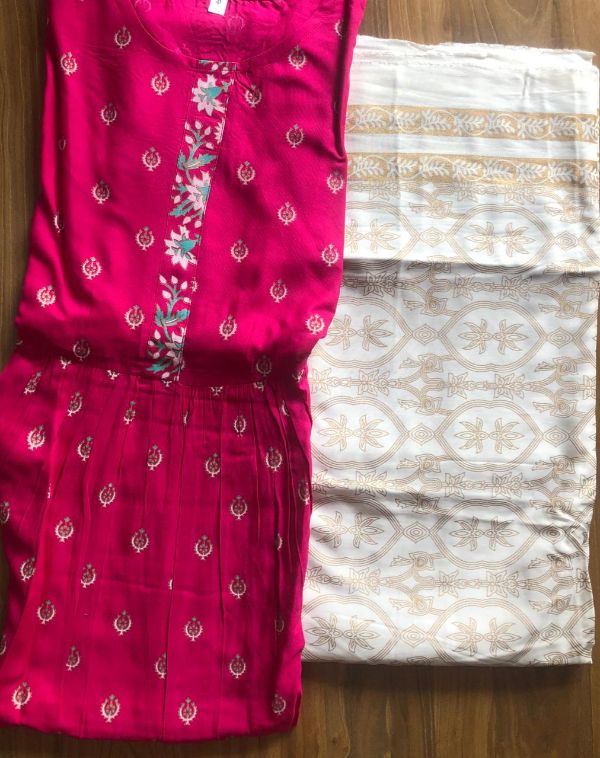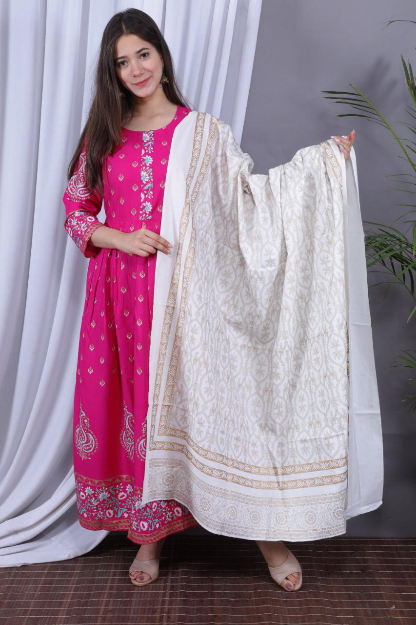 Balaji Emporium Presents Rayon With Gold Print Ling Gown Collection
