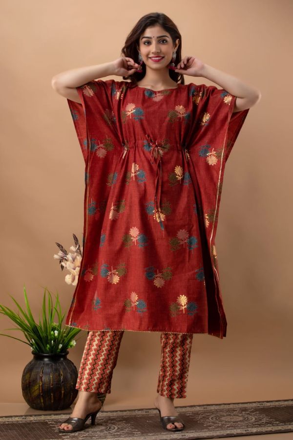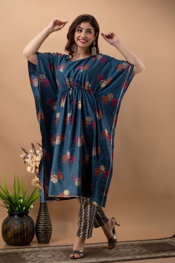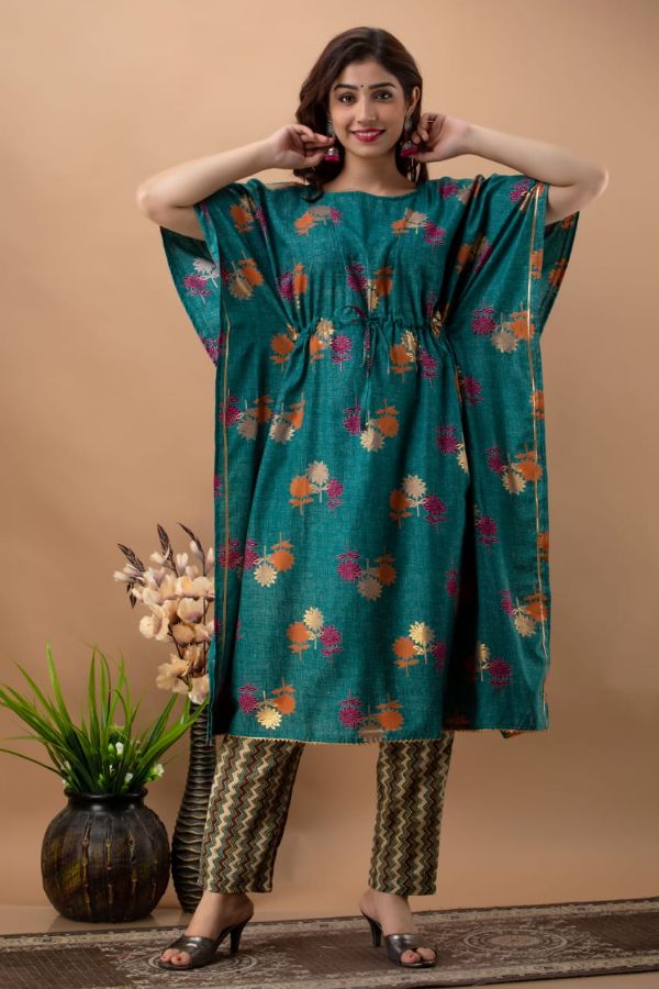 Latest Designer kaftan with pent Collection. Exclusive with Foil & Thread Embroidery Work gives a Fashionable Look, High sensed style and luxury makes you ready for envious glazes and very rich & Royal in the Party, Function, Event etc.