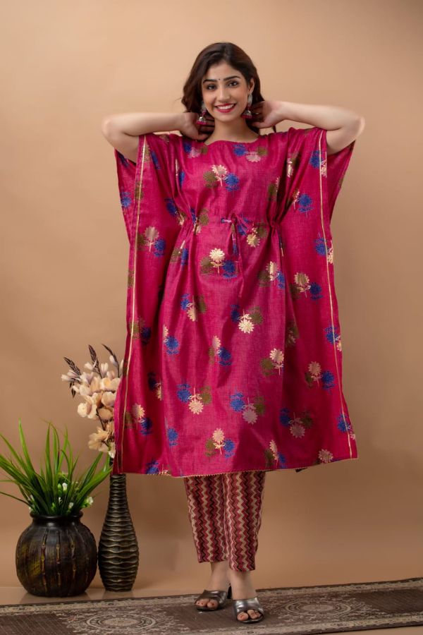 Balaji Emporium Presents Rayon With Heavy Print And Gota Lace Kaftan With Pent Collection