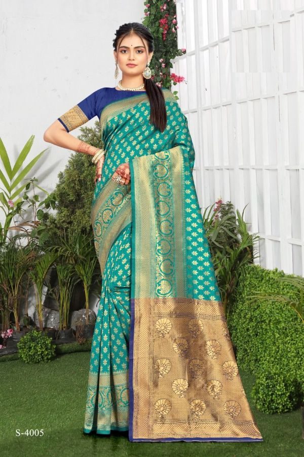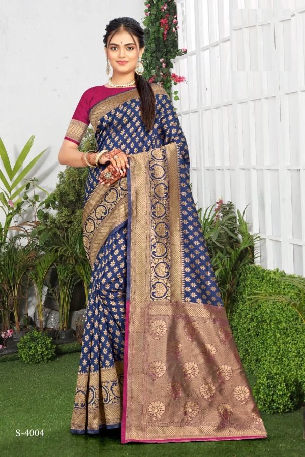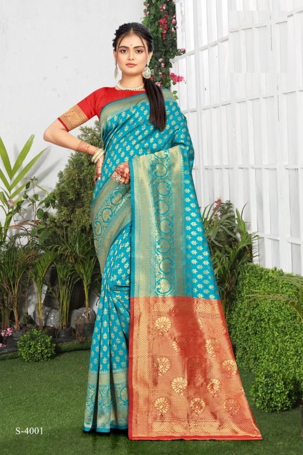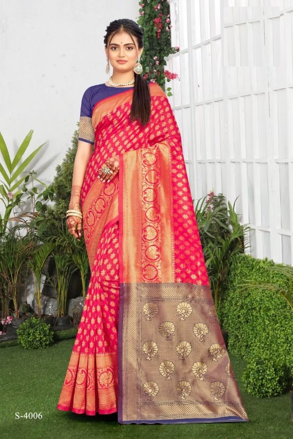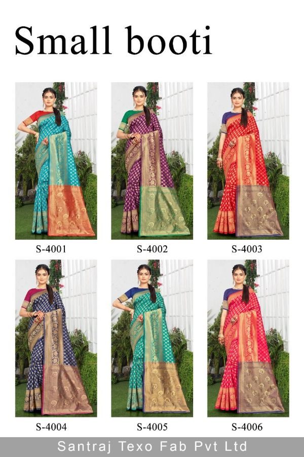 Balaji Emporium Presents Small Booti Dno S-4001 - S-4006 Series Indian Traditionalparty Wear Banarsi Silk Saree At Wholesale Price