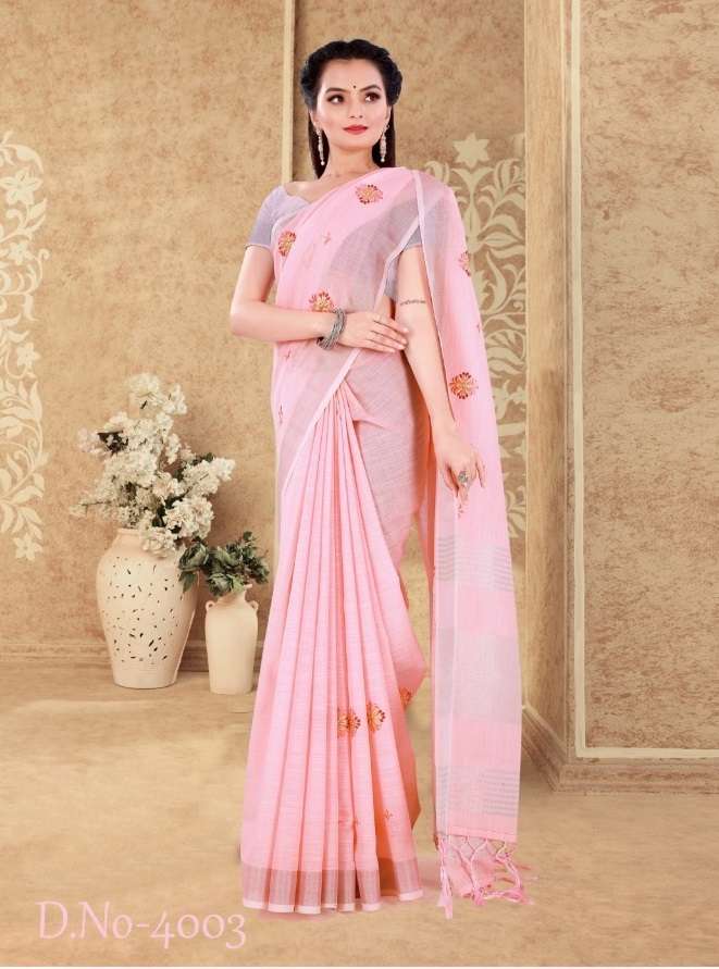 BALAJI EMPORIUM PRESENTS SNEHA DNO 4001 - 4006 SERIES INDIAN CASUAL TRADITIONAL LINEN SAREE SARI FOR WOMEN ETHNIC WEAR COLLECTION