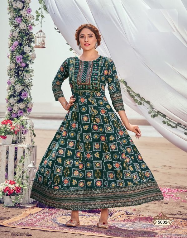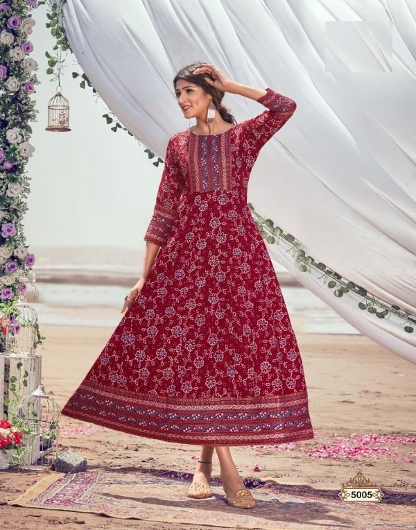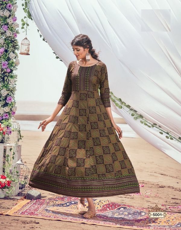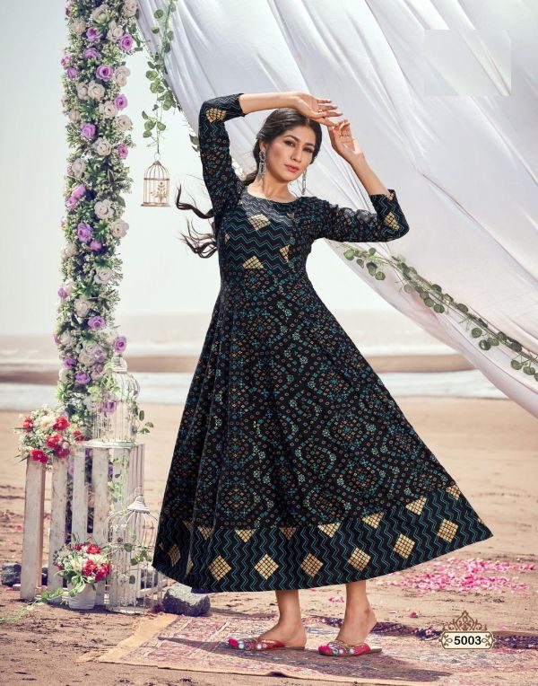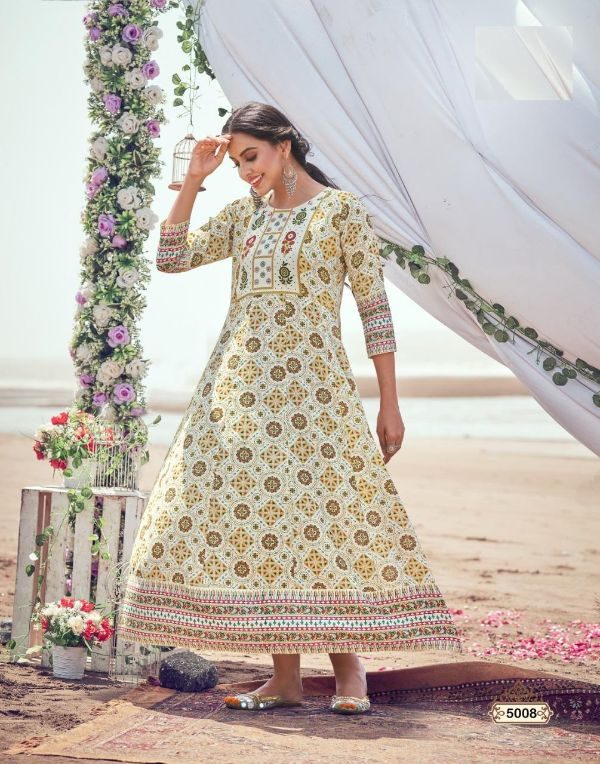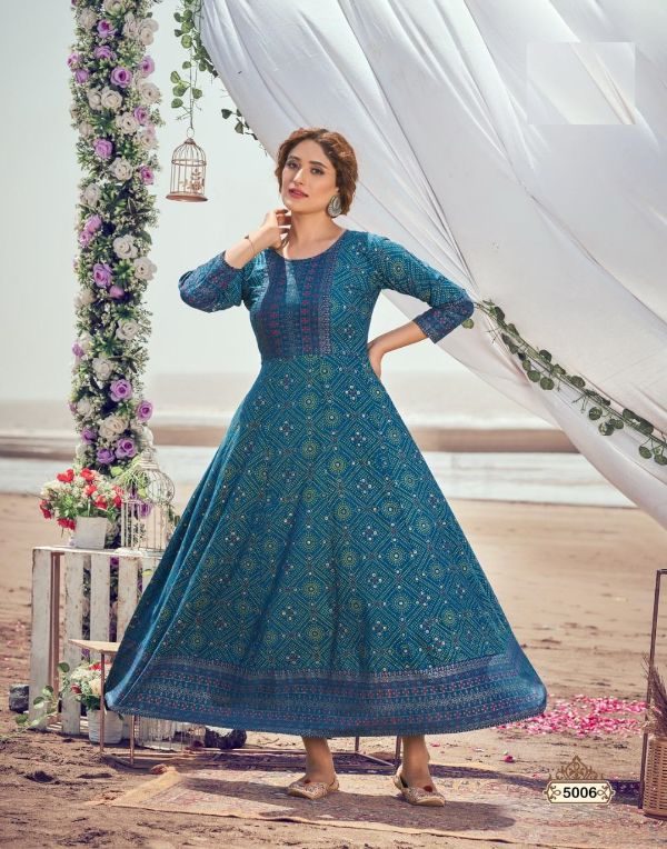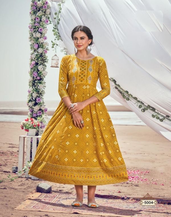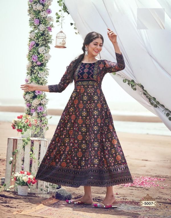 | Catalogue: | BALAJI EMPORIUM PRESENTS UP TO DATE DNO 5001 - 5008 SERIES INDIAN WOMEN ANARKALI RAYON KURTI WITH FOIL PRINT CASUAL TRADITIONAL WEAR COLLECTION |
