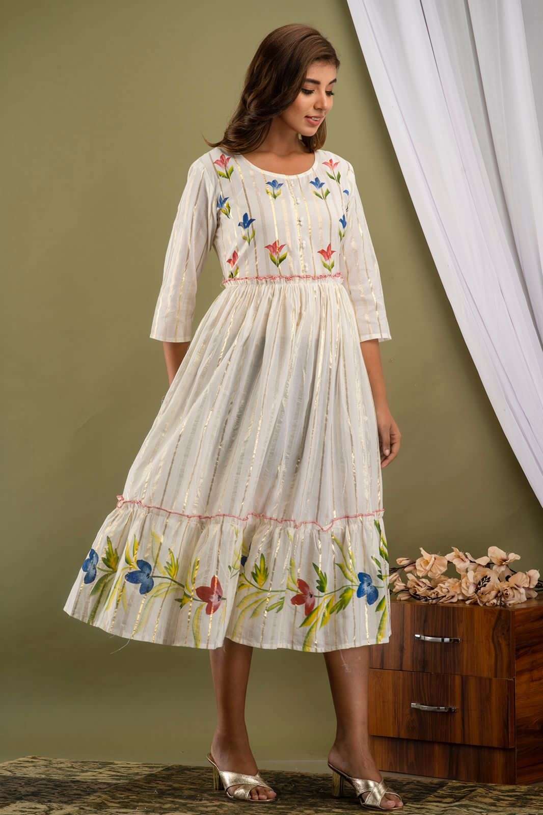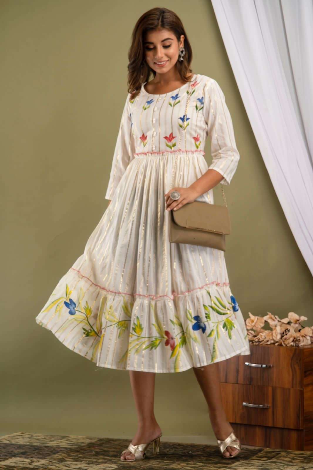 BALAJI EMPORIUM PRESENTS WHITE ANARKALI BRUSH PRINT WORK ONE PIECE KURTI ETHNIC TRADITIONAL CASUAL WEAR FOR WOMEN AND GIRLS COLLECTION 497U