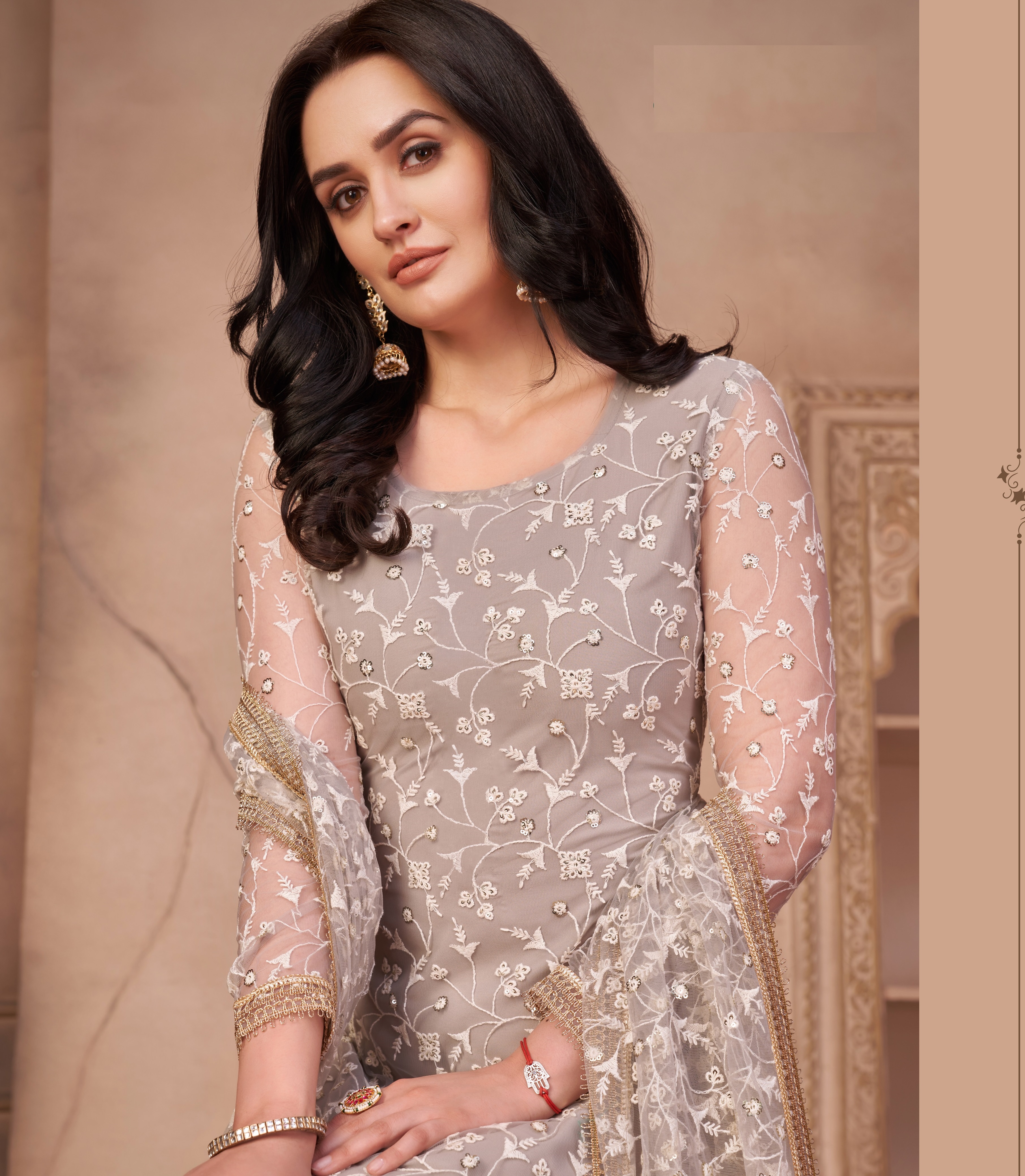 FABRIC: TOP: Mono Net || BOTTOM: American Crepe || DUPATTA: Mono Net