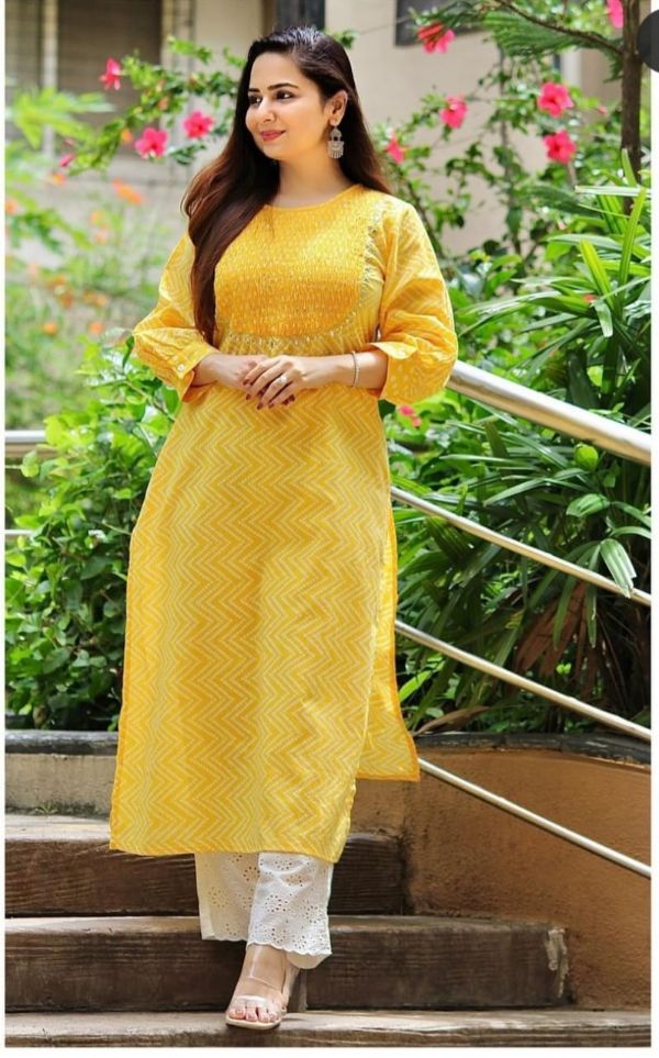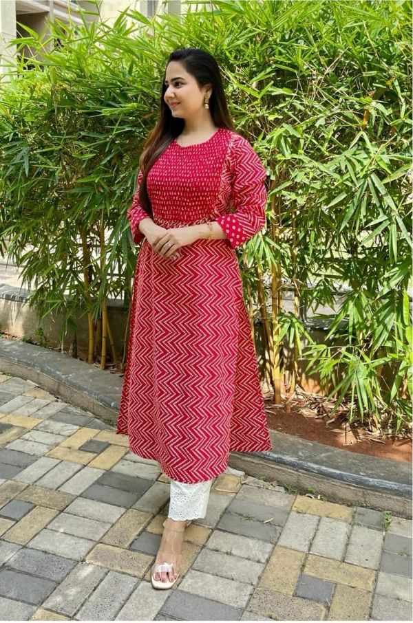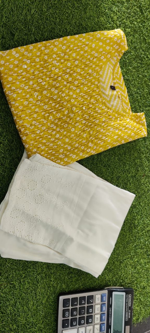 Balaji Emporium Pure Cotton Bandaj Print With All Over Gotta Detailing And Heavy Hand Work Kurti With Plazzo Collection