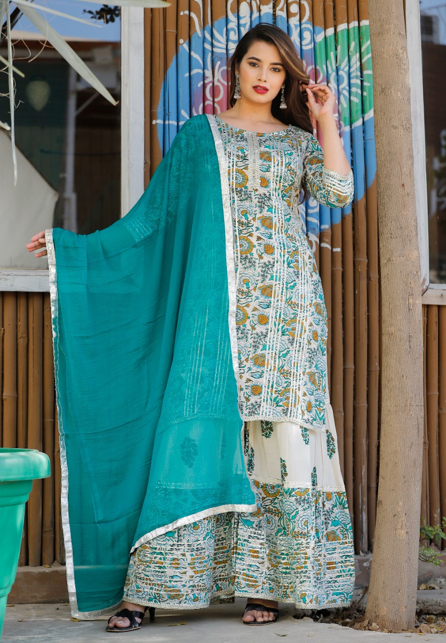 Balaji Emporium Rayon Kurti With Sharara And Siffon Dupatta Collection