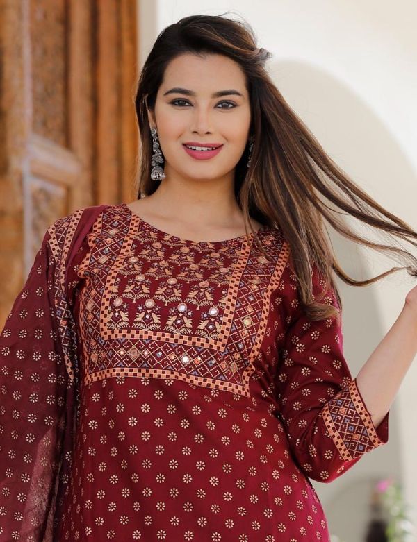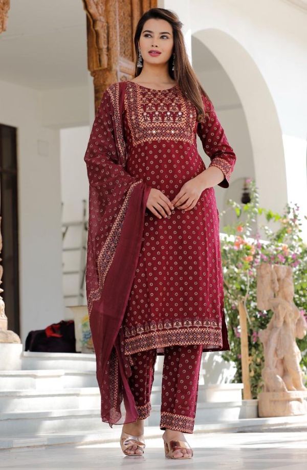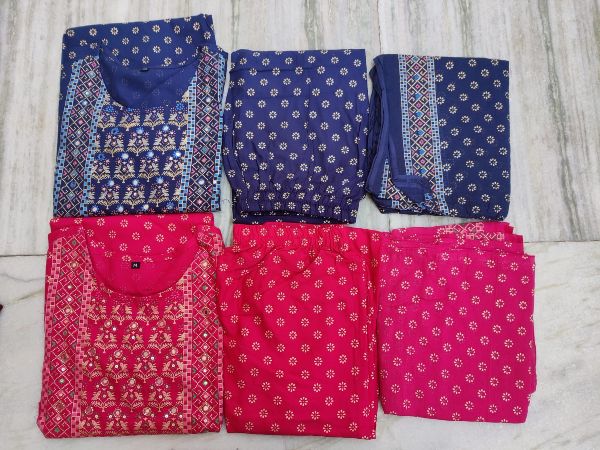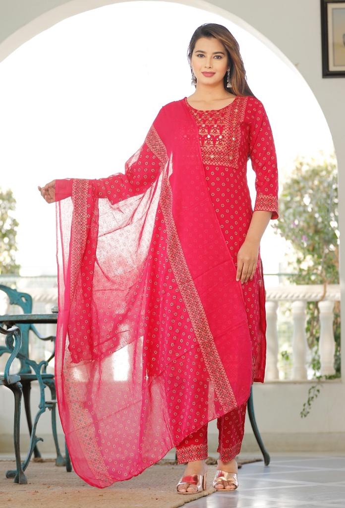 Balaji Emporium Rayon Printed With Sequence Embroidery And Real Mirror Work Kurti Pent And Dupatta Collection