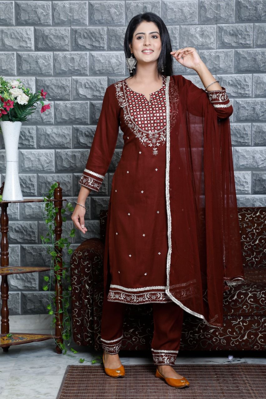 Balaji Emporium Rayon With Hand Work Kurti Pent Dupatta Collection