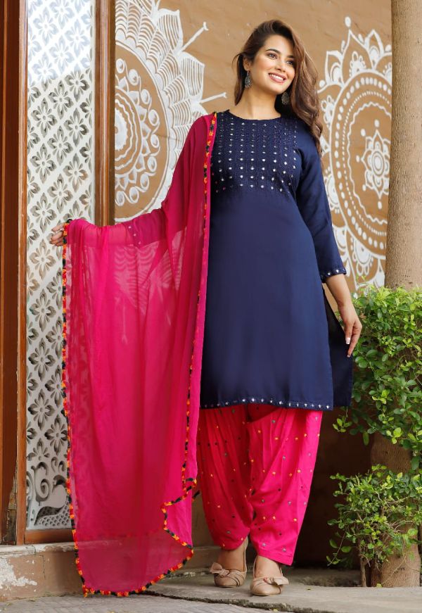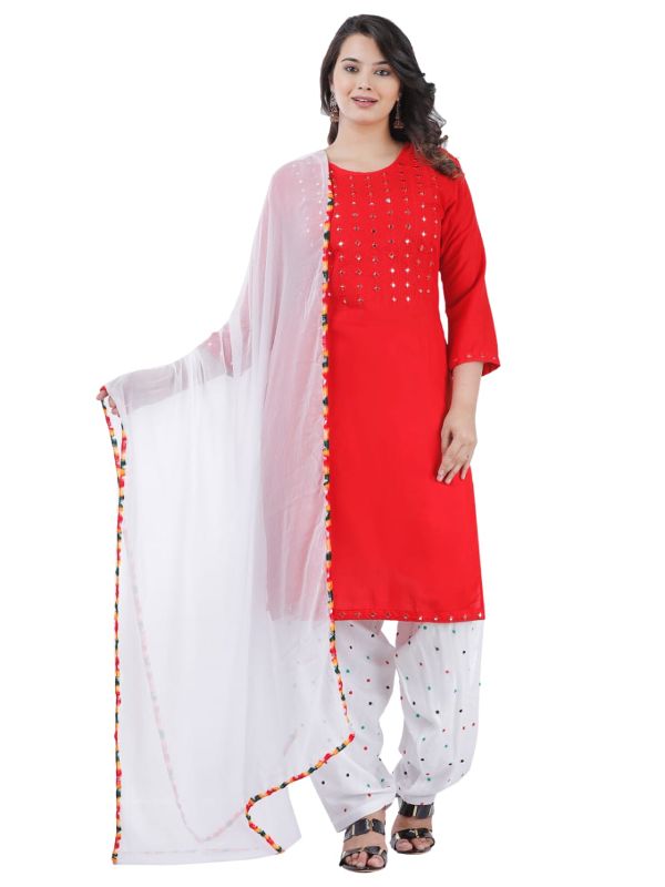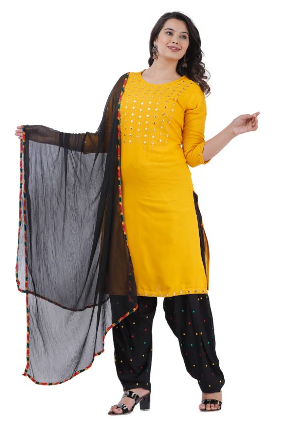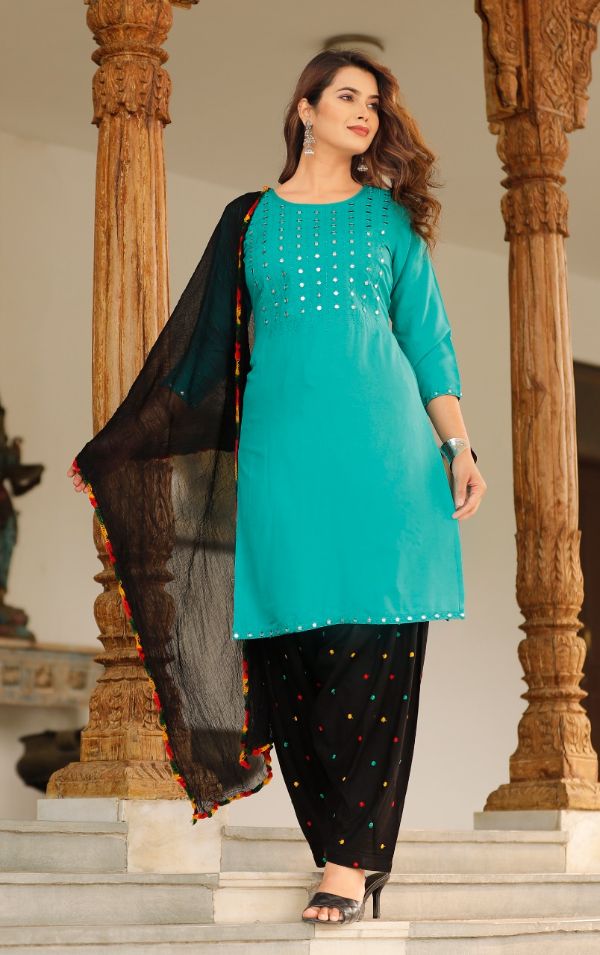 Balaji Emporium Rayon With Mirror And Embroidery Full Stiched Kurti Patialya With Dupatta