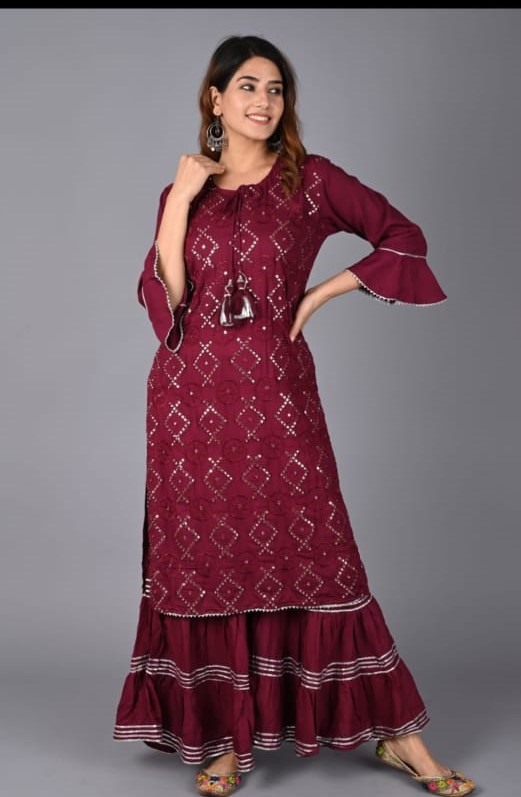 Balaji Emporium Rayon With Mirror Embroidery Kurti With Plazzo Collection