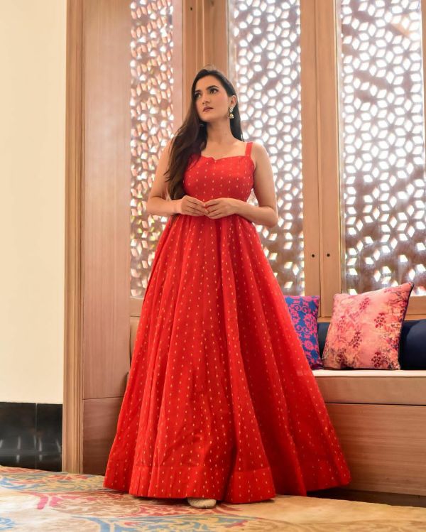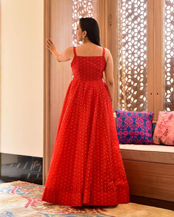 Latest Designer gown Collection. Exclusive with Foil & Thread Embroidery Work gives a Fashionable Look, High sensed style and luxury makes you ready for envious glazes and very rich & Royal in the Party, Function, Event etc.