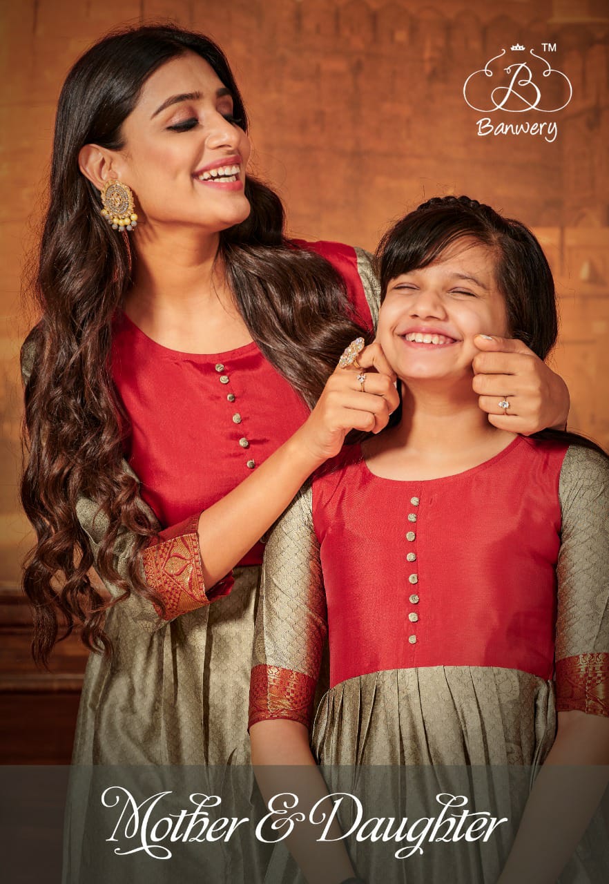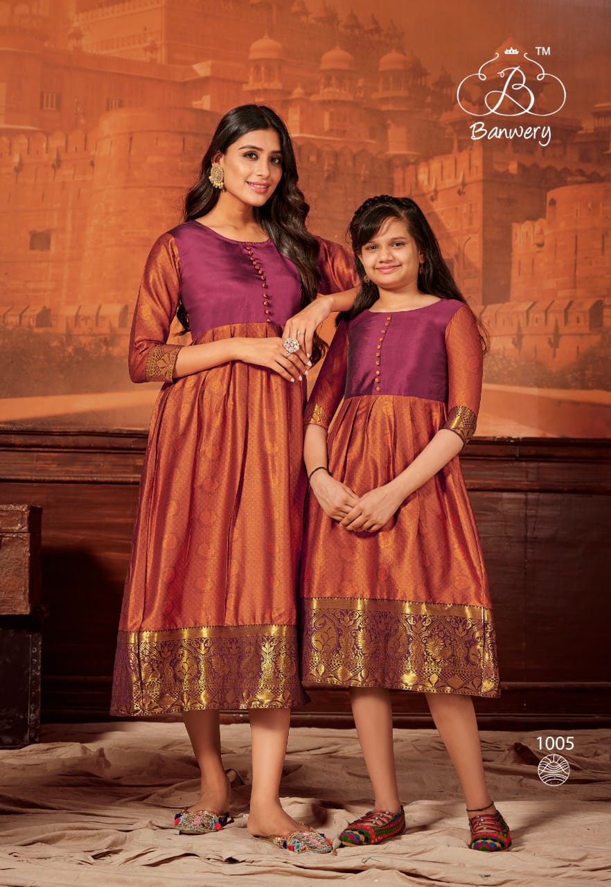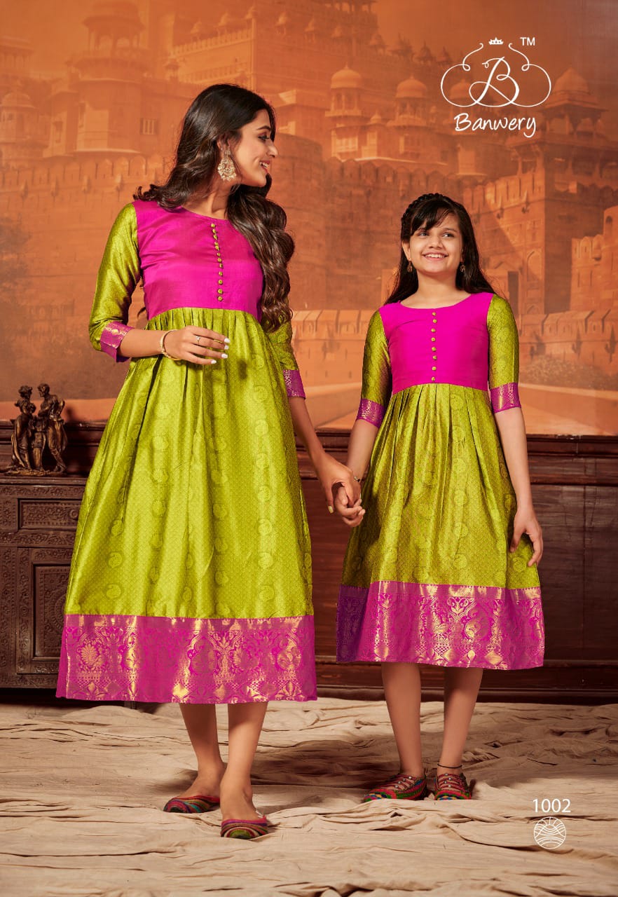 Banwery Presents Mother And Daughter 1001 - 1006 Series Pattu Silk Weaving With Jecquard Border Fancy Function Wear Mother Daugher Combo Collection