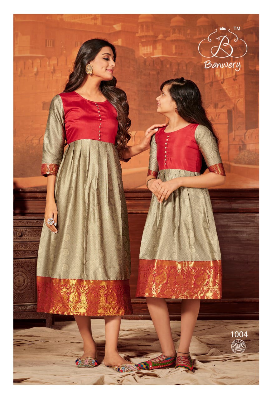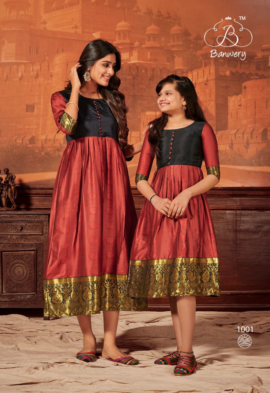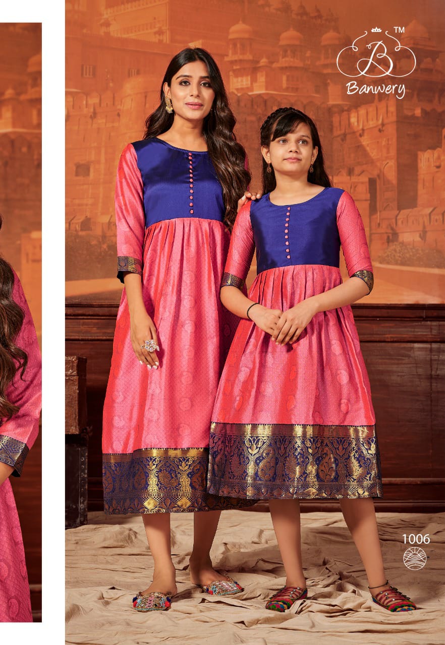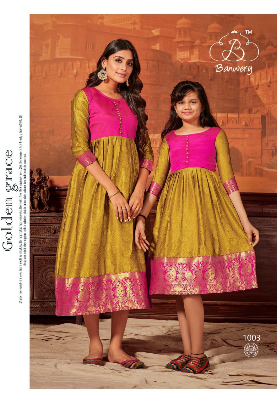 Banwery Presents Mother And Daughter 1001 - 1006 Series Pattu Silk Weaving With Jecquard Border Fancy Function Wear Mother Daugher Combo Collection