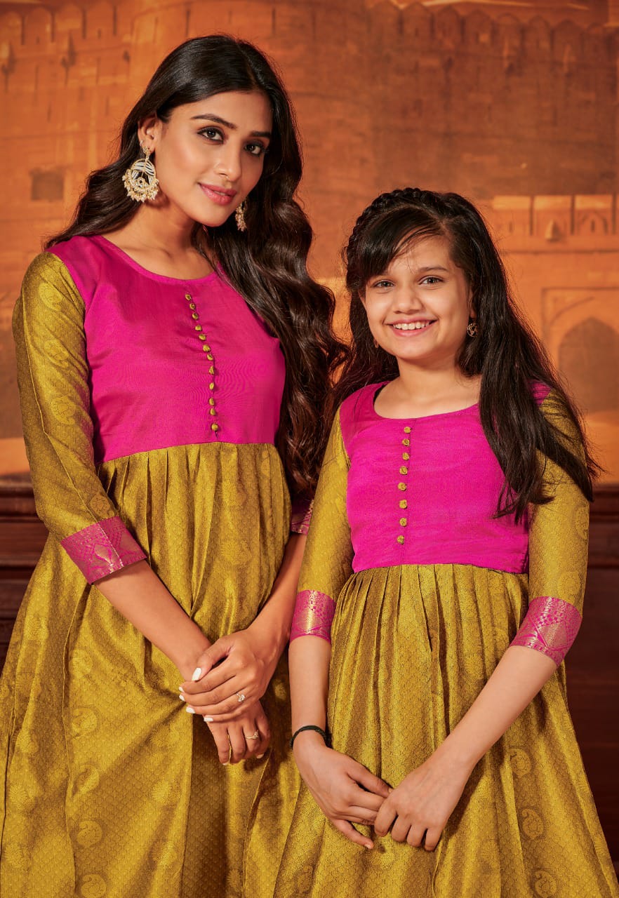 Latest Designer mother daughter Collection. Exclusive with Work gives a Fashionable Look, High sensed style and luxury makes you ready for envious glazes and very rich & Royal in the Party, Function, Event etc.