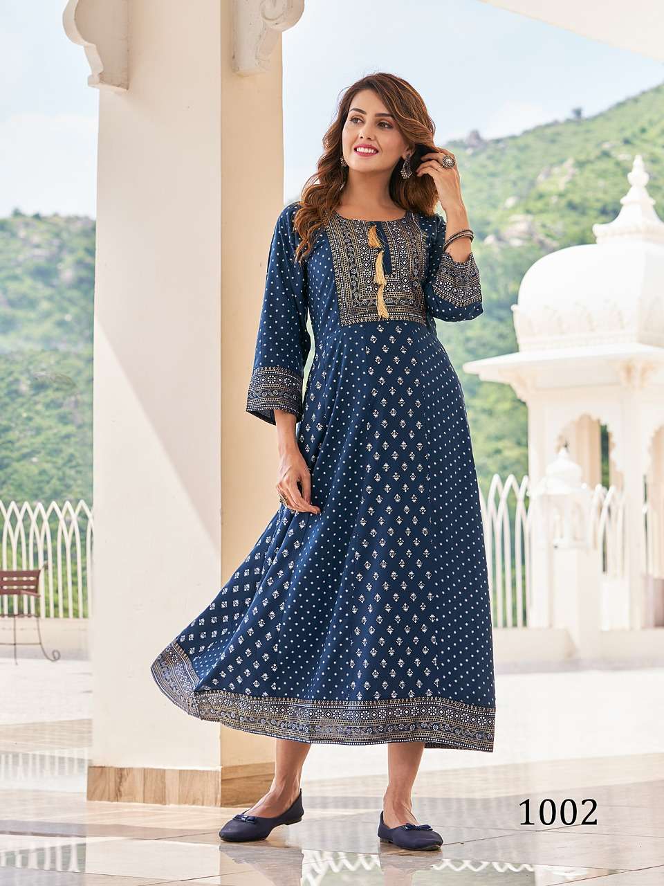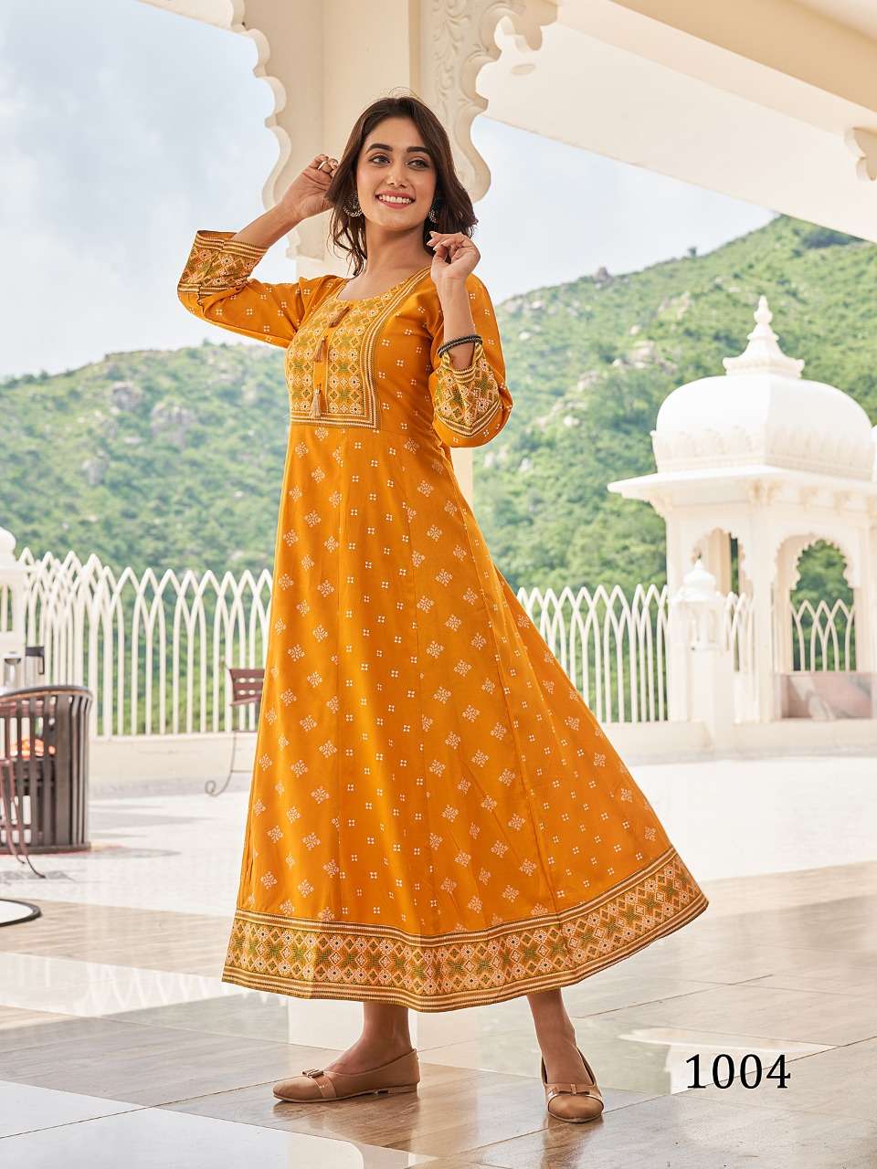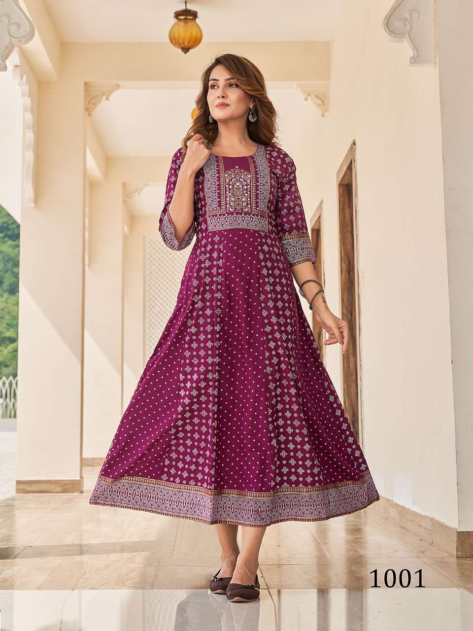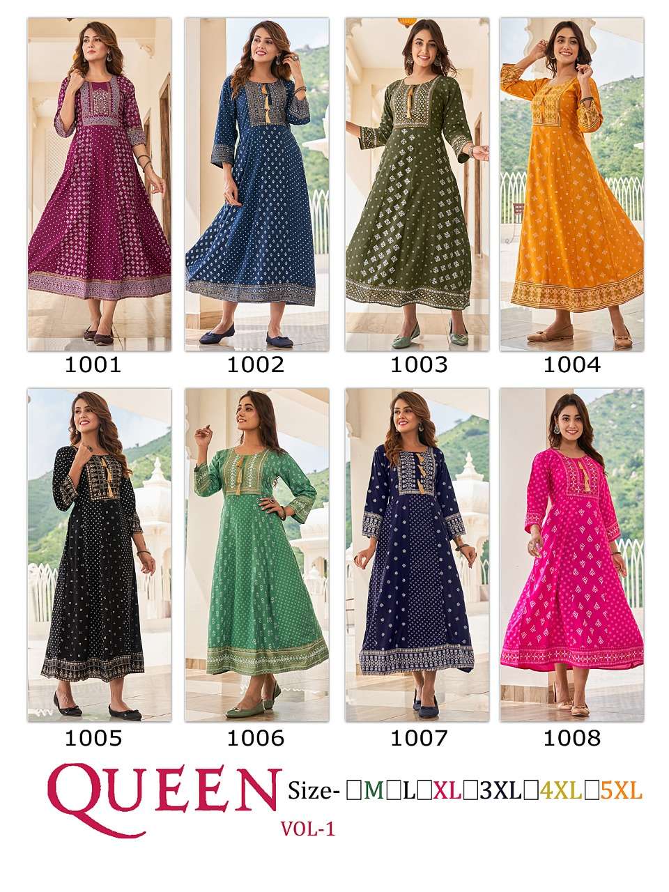 BANWERY PRESENTS QUEEN VOL-1 1001 TO 1008 SERIES RAYON PRINTS GOWN PARTY WEAR COLLECTION AT WHOLESALE RATES N490