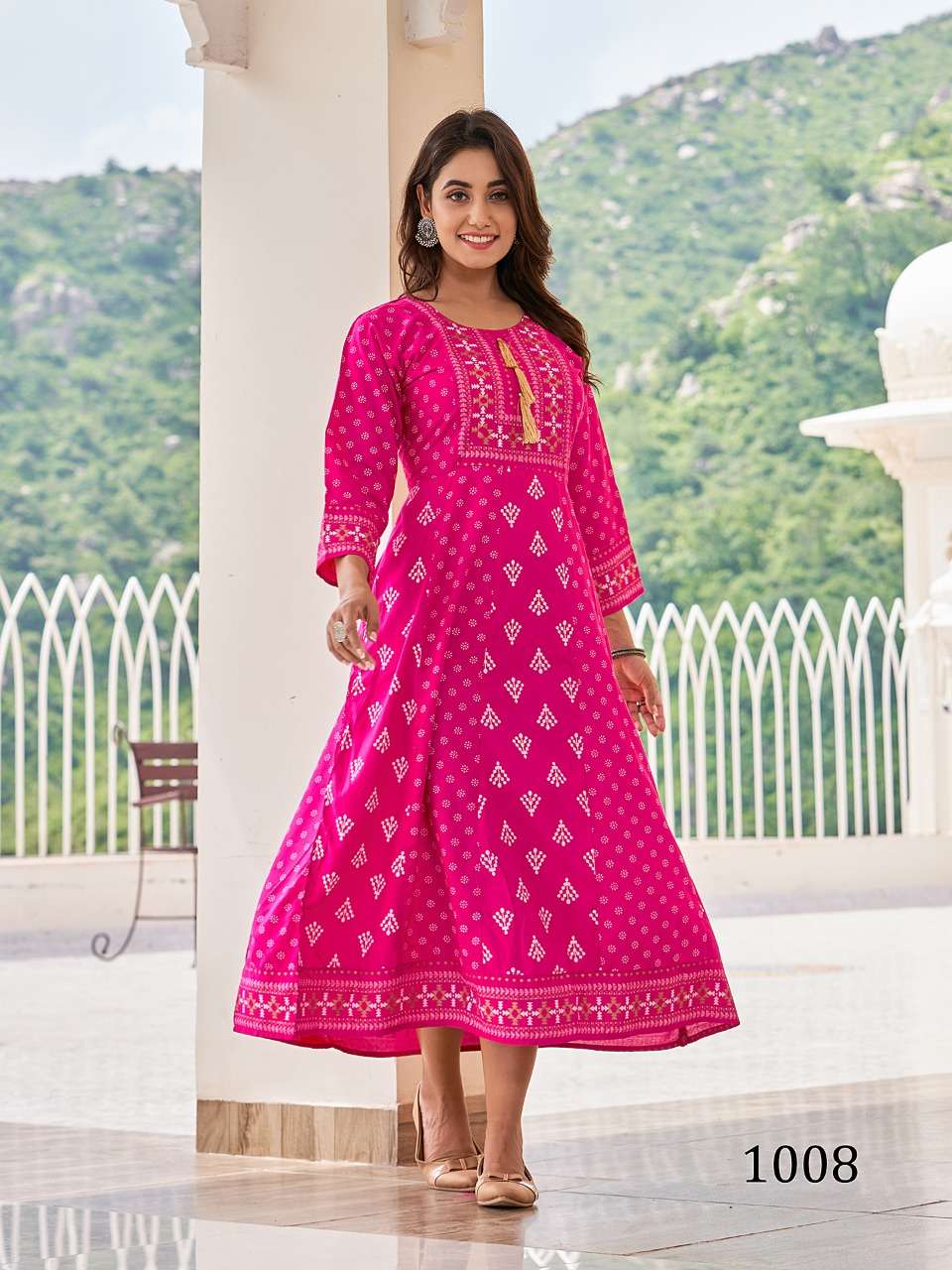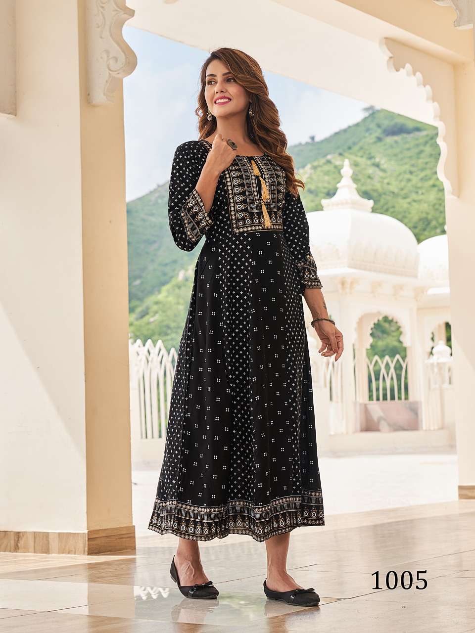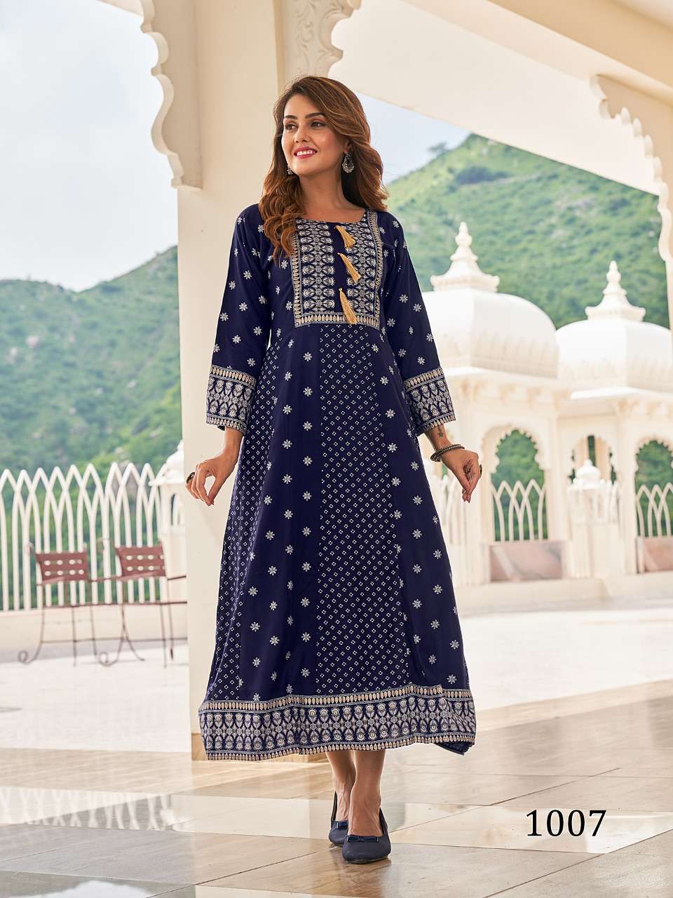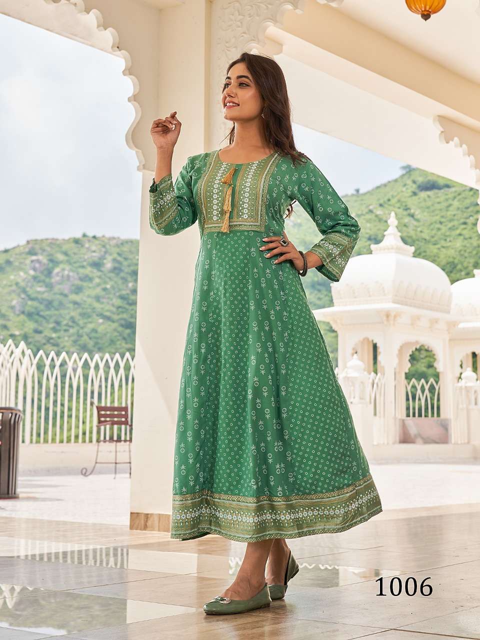 BANWERY PRESENTS QUEEN VOL-1 1001 TO 1008 SERIES RAYON PRINTS GOWN PARTY WEAR COLLECTION AT WHOLESALE RATES N490