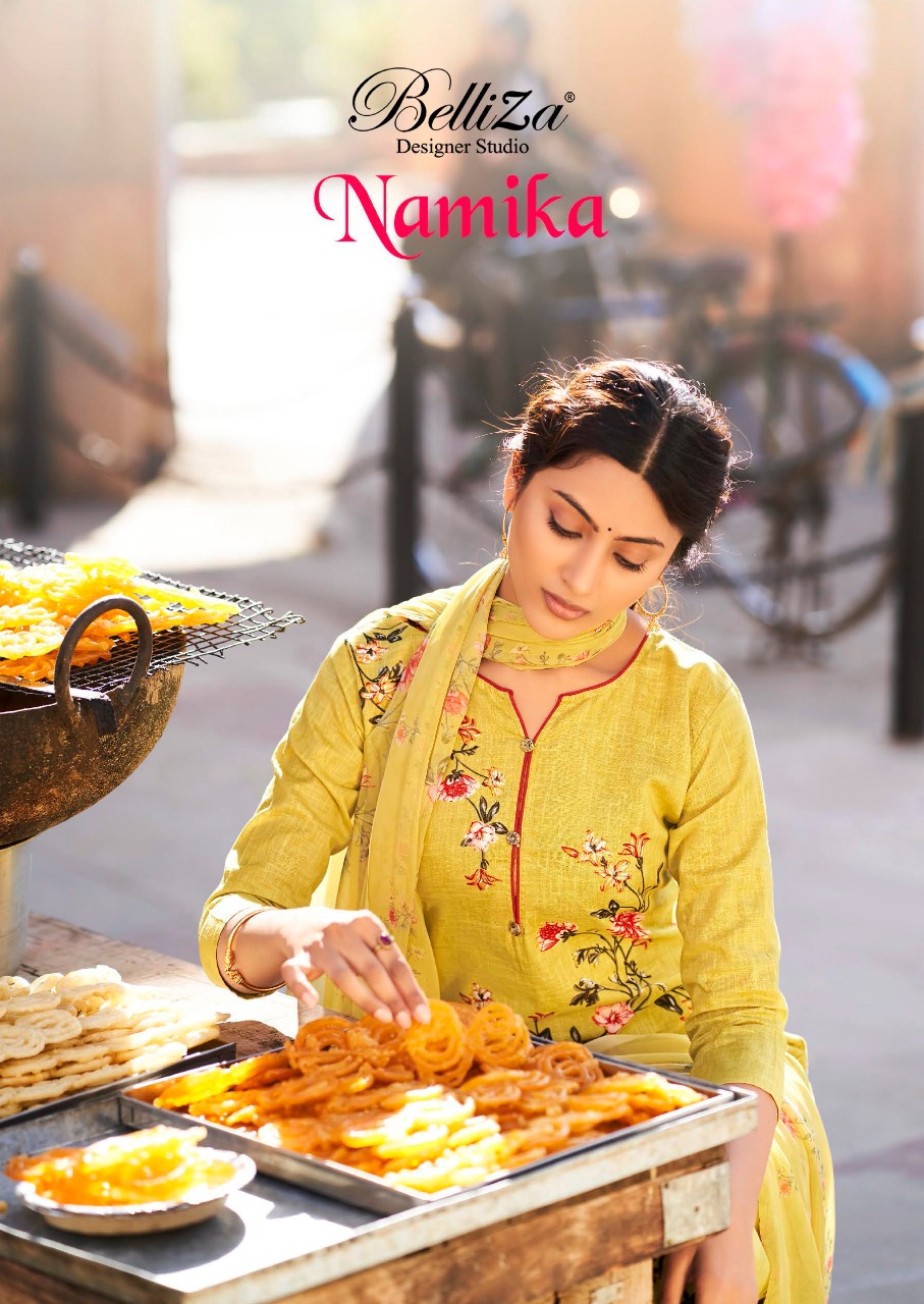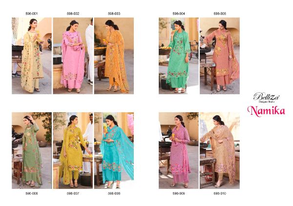 Belliza Presents Namika 596-001 - 596-010 Series Pure Cotton Linen With Digital Print Salwar Kameez Collection