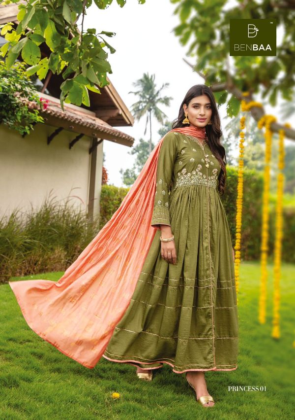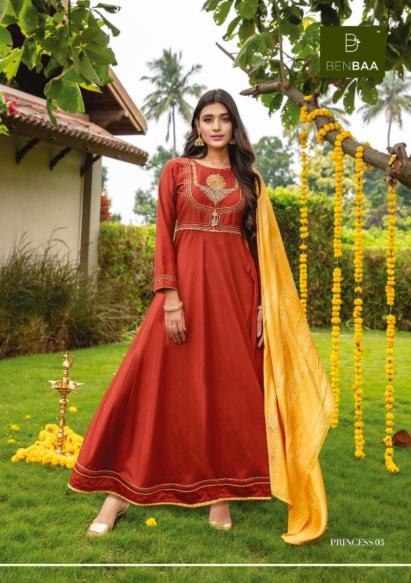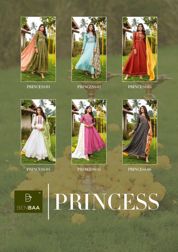 Benbaa Presents Princess 01-06 Series Heavy Fancy Silk Floor Length Long Piece With Embroidered Thread Work Salwar Kameez Collection