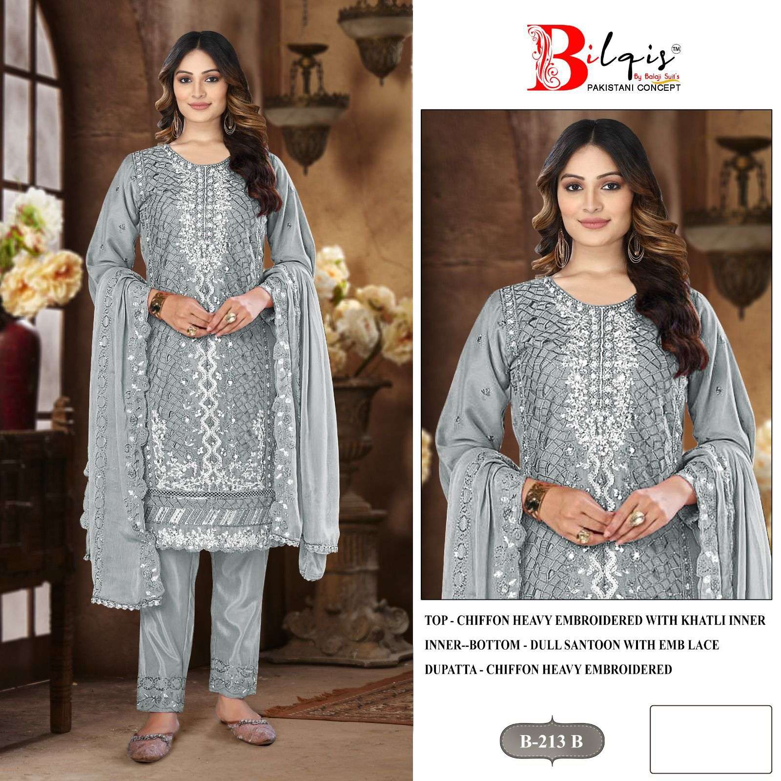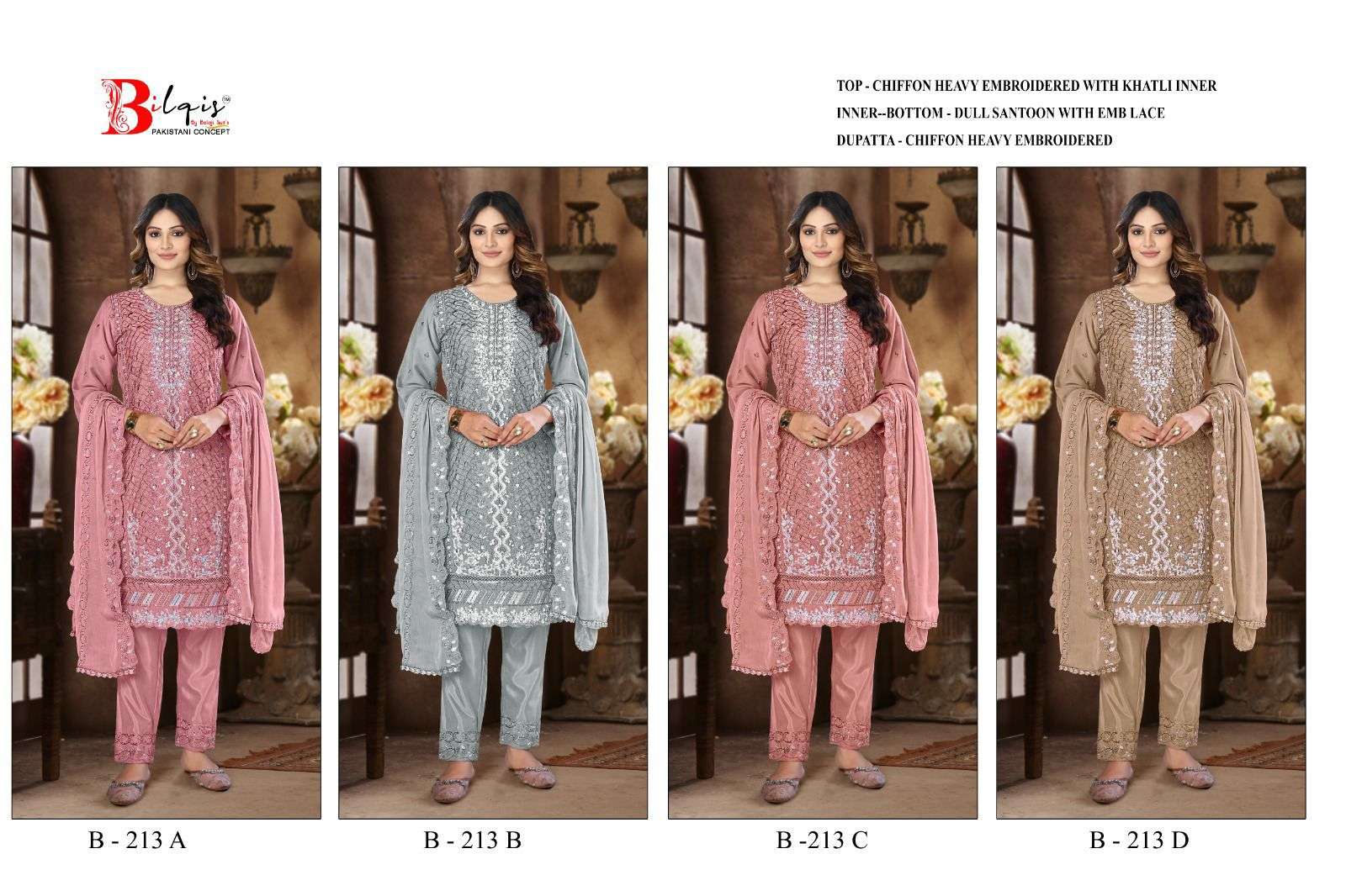 | Catalogue: | BILQIS B 213 A TO D CHIFFON EMBROIDERED & HANDWORK PAKISTANI SUIT |