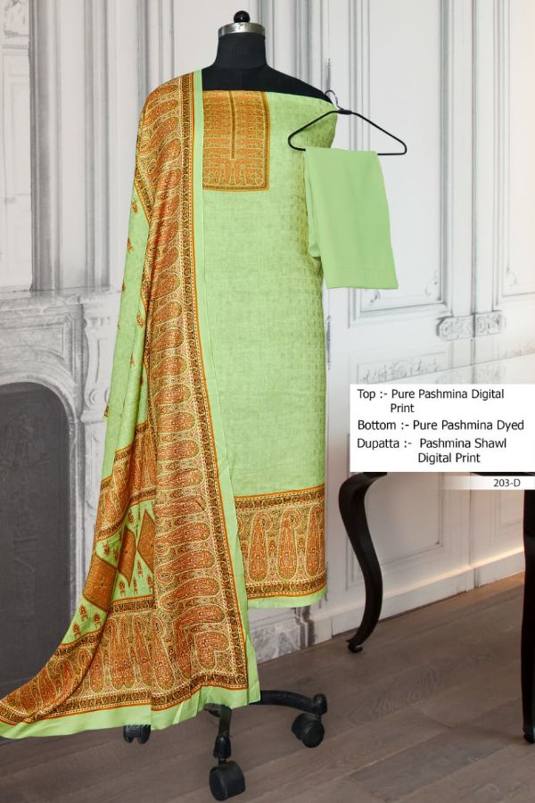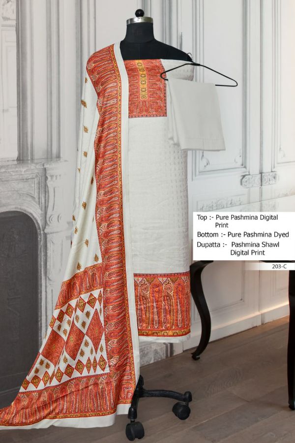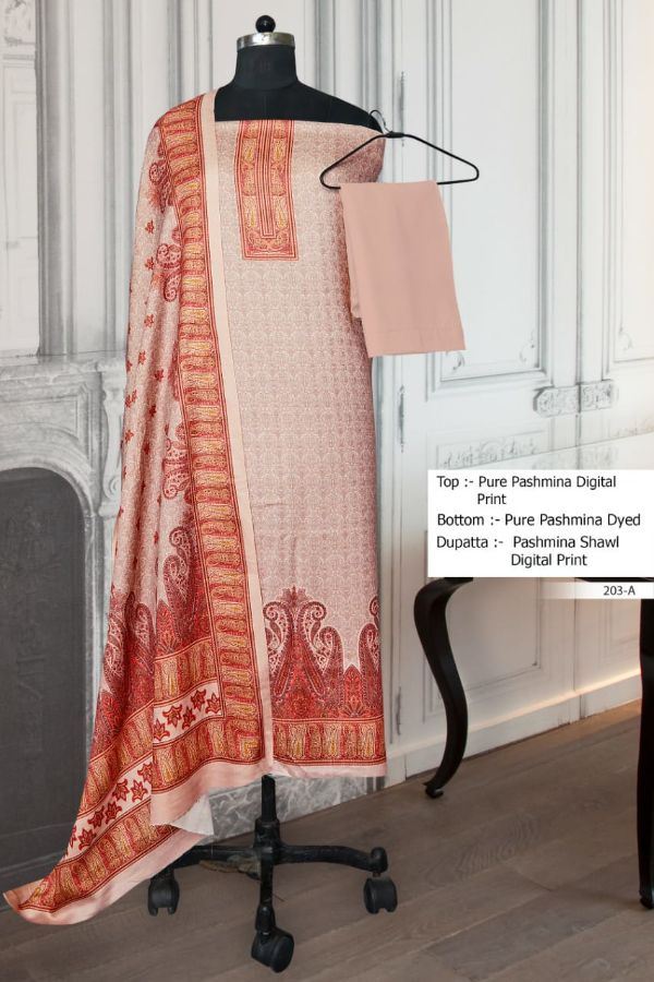 Bipson Presents 203 Colours 203a - 203d Series Woollen Pashmina Digital Print With Button Fancy Dress Material Collection
