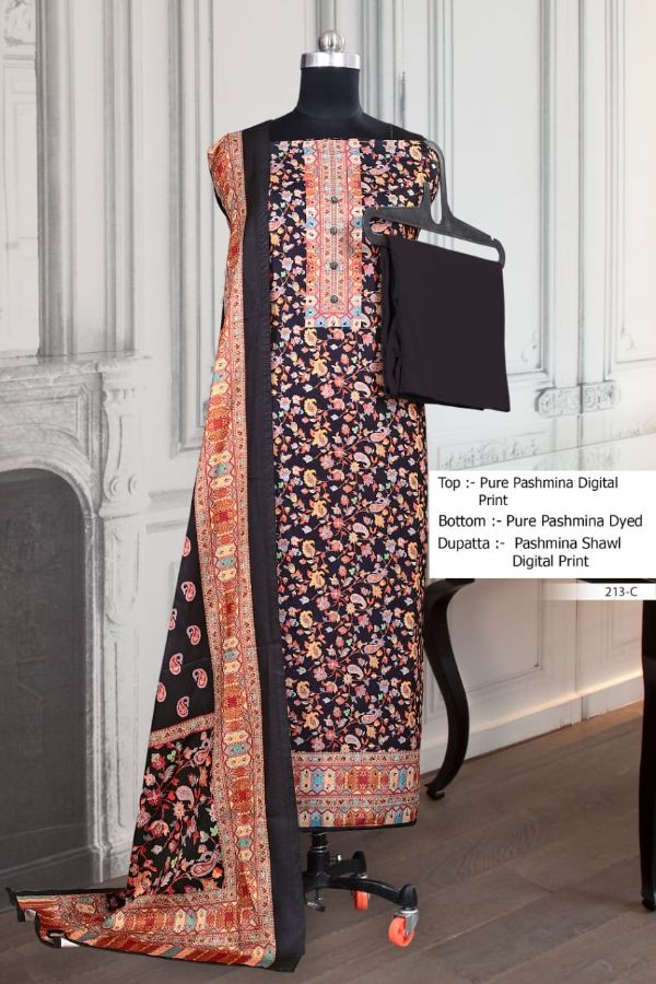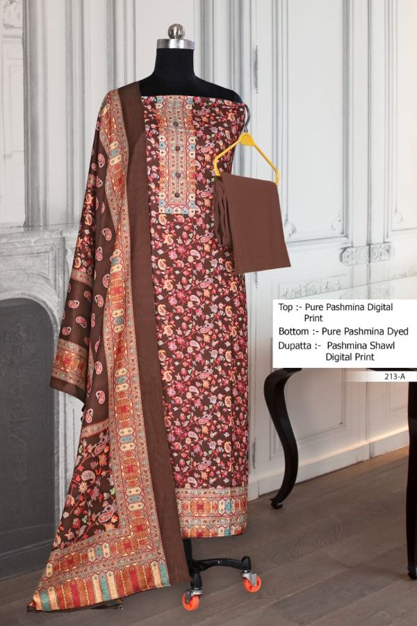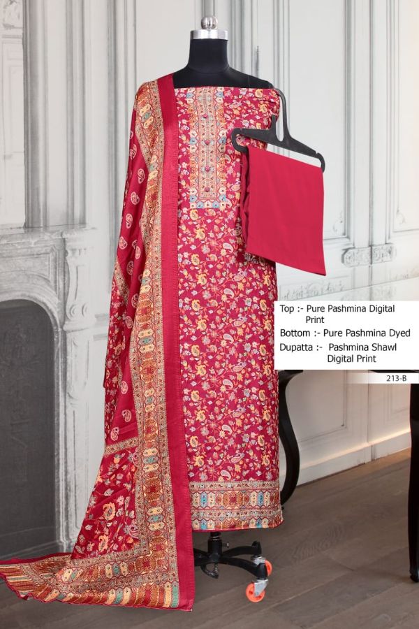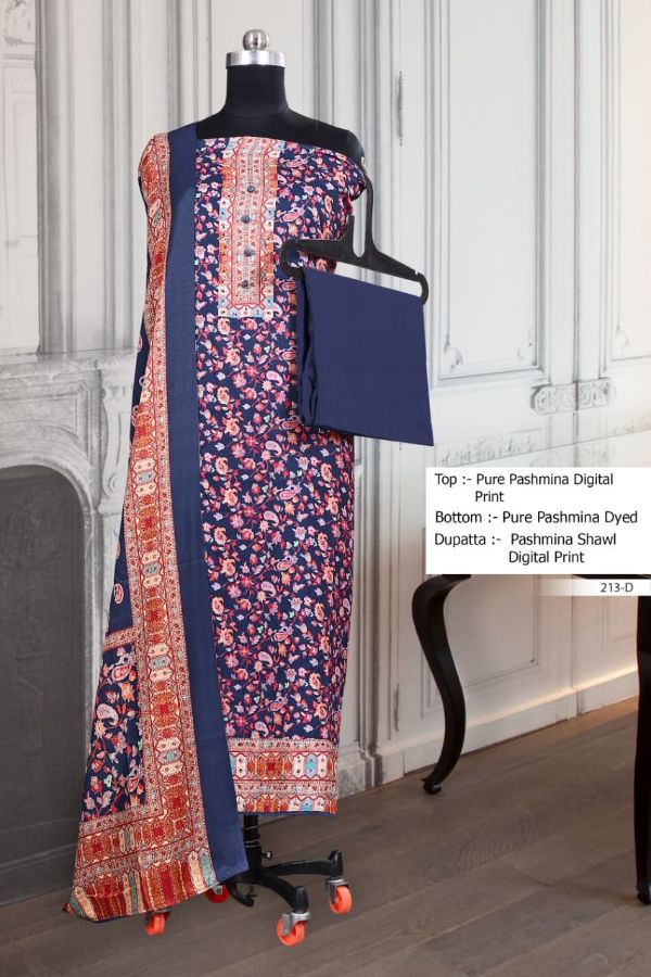 Bipson Presents 213 Colours 213a - 2132d Series Woollen Pashmina Digital Print With Button Beautiful Dress Material Collection