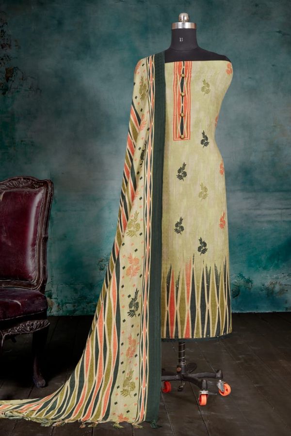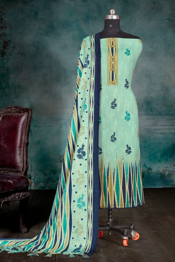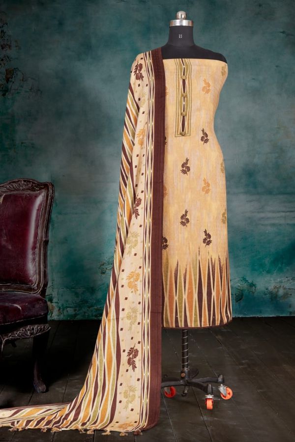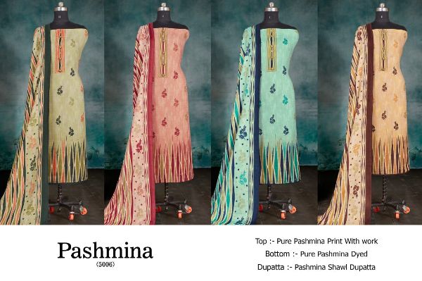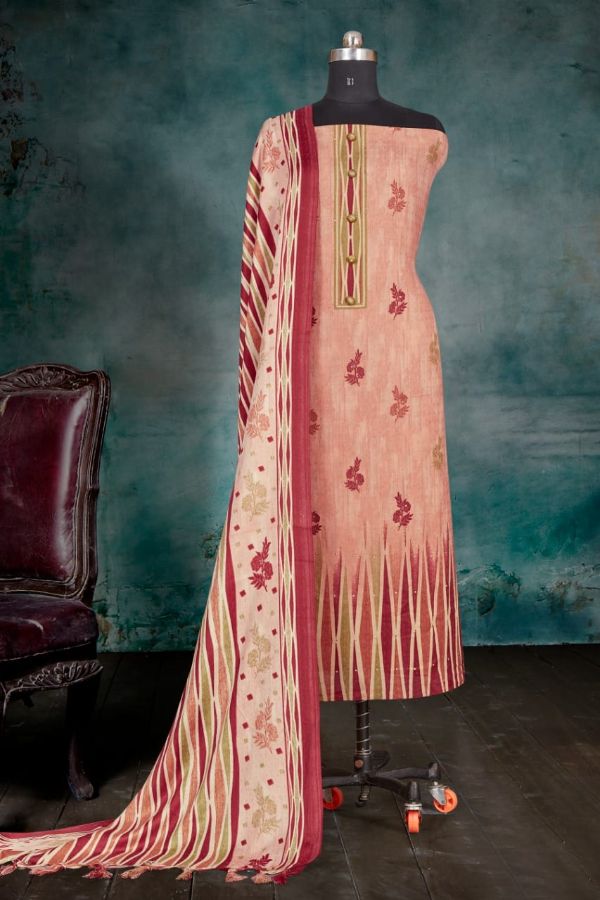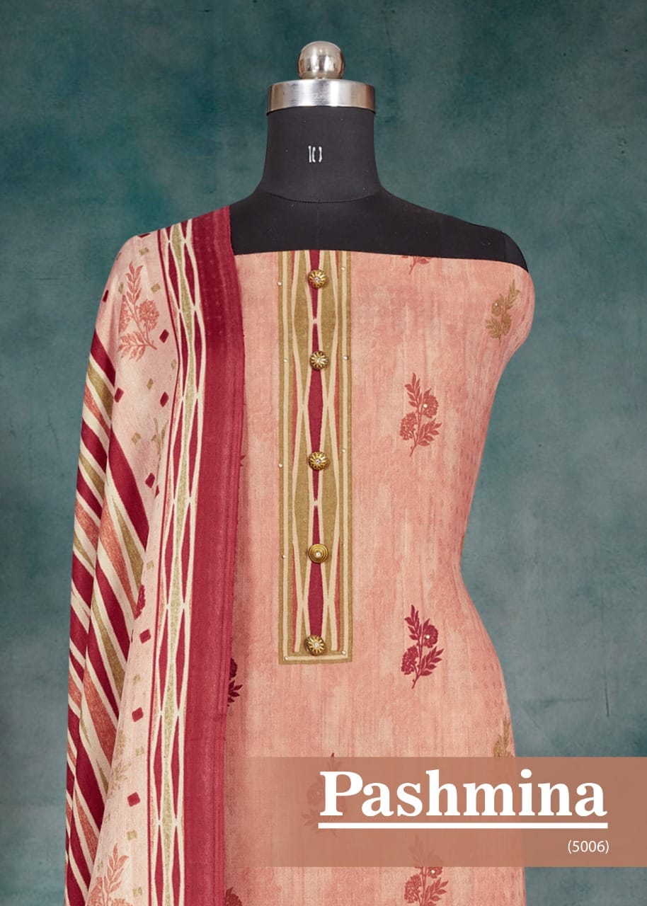 Bipson Presents Pashmina 5006a -5006d Series Woollen Pashmina Print With Button Dress Material Collection