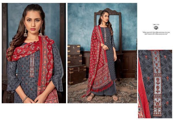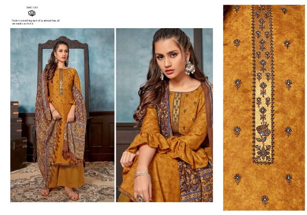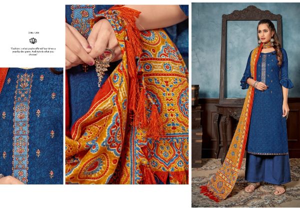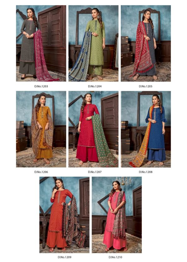 Bipson Presents Ruhani 1203-1210 Series Woollen Pashmina Print With Embroidery Neck Work Salwar Suit Collection