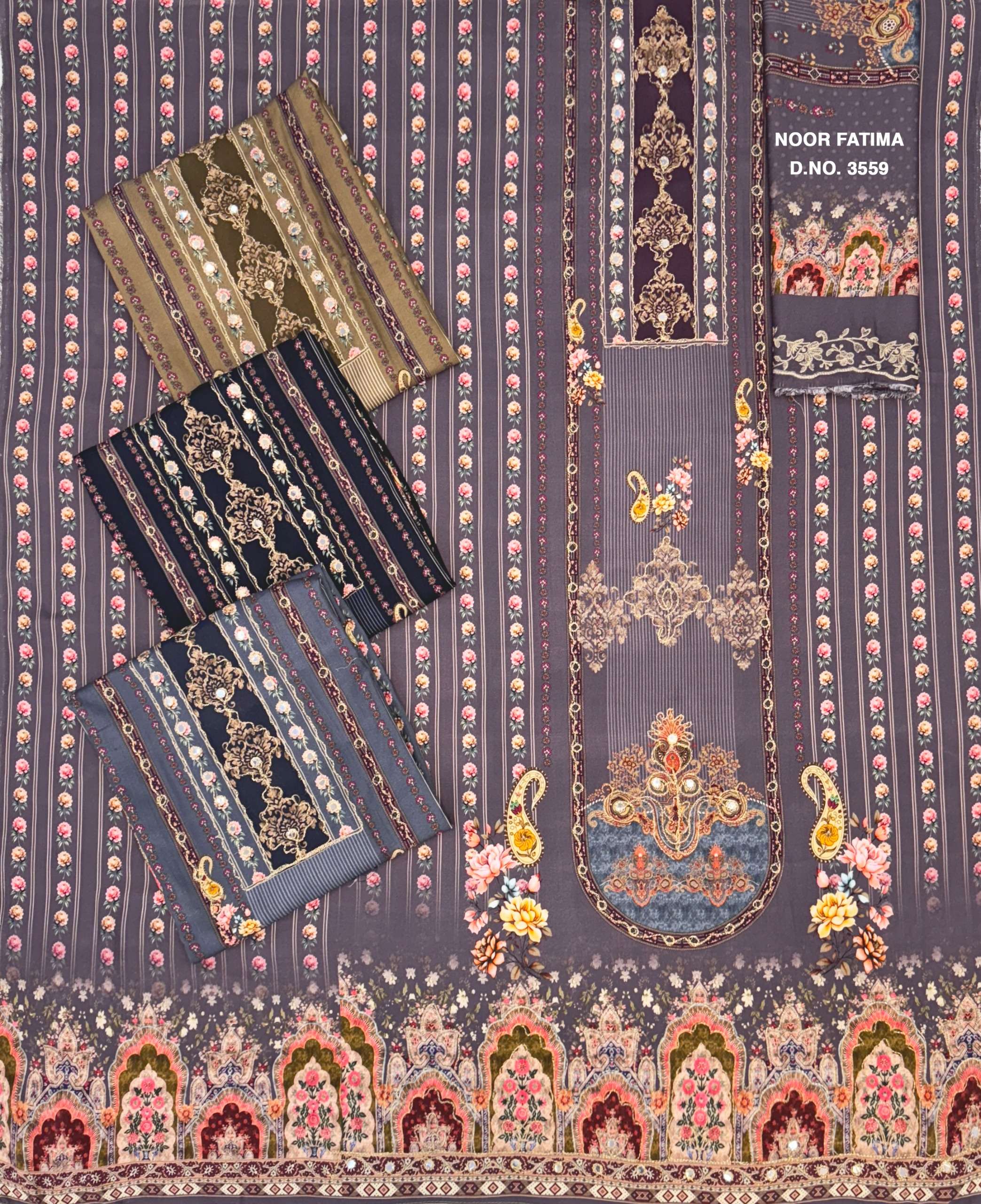 | Catalogue: | BIPSON PRINTS NOOR FATIMA 3559 Pure Cotton Cambric Suit with Hand Work |