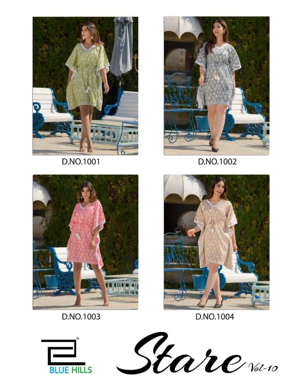 Blue Hills Presents Stare Vol-10 1001-1004 Series Rayon Print With Border Lace Kaftan Collection