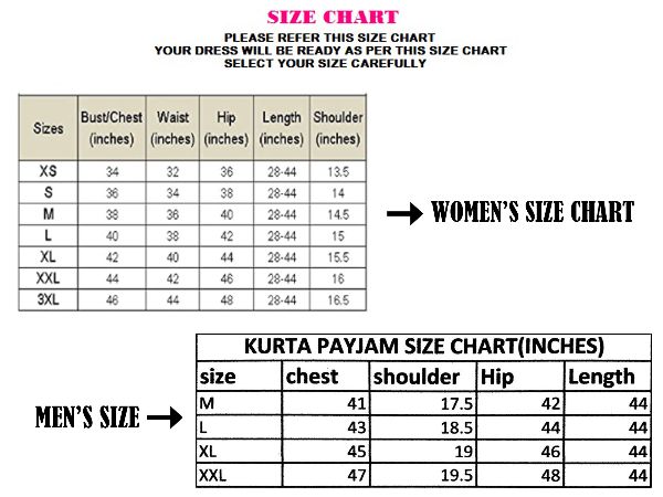 Size : Maximum Bust Size Upto 42 -44 Inches.