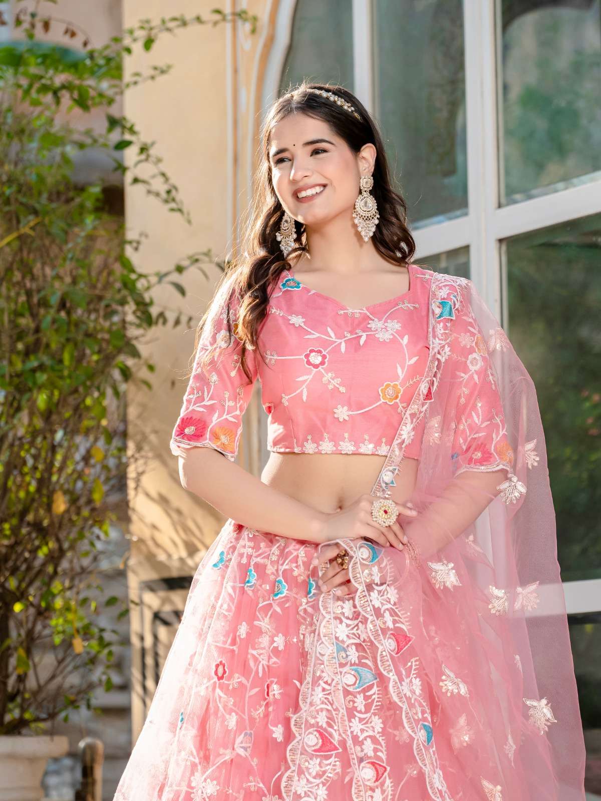 | Catalogue: | Crazy Cloths 04 PINK Net Embroidery Lehenga Choli for Special Occasions |