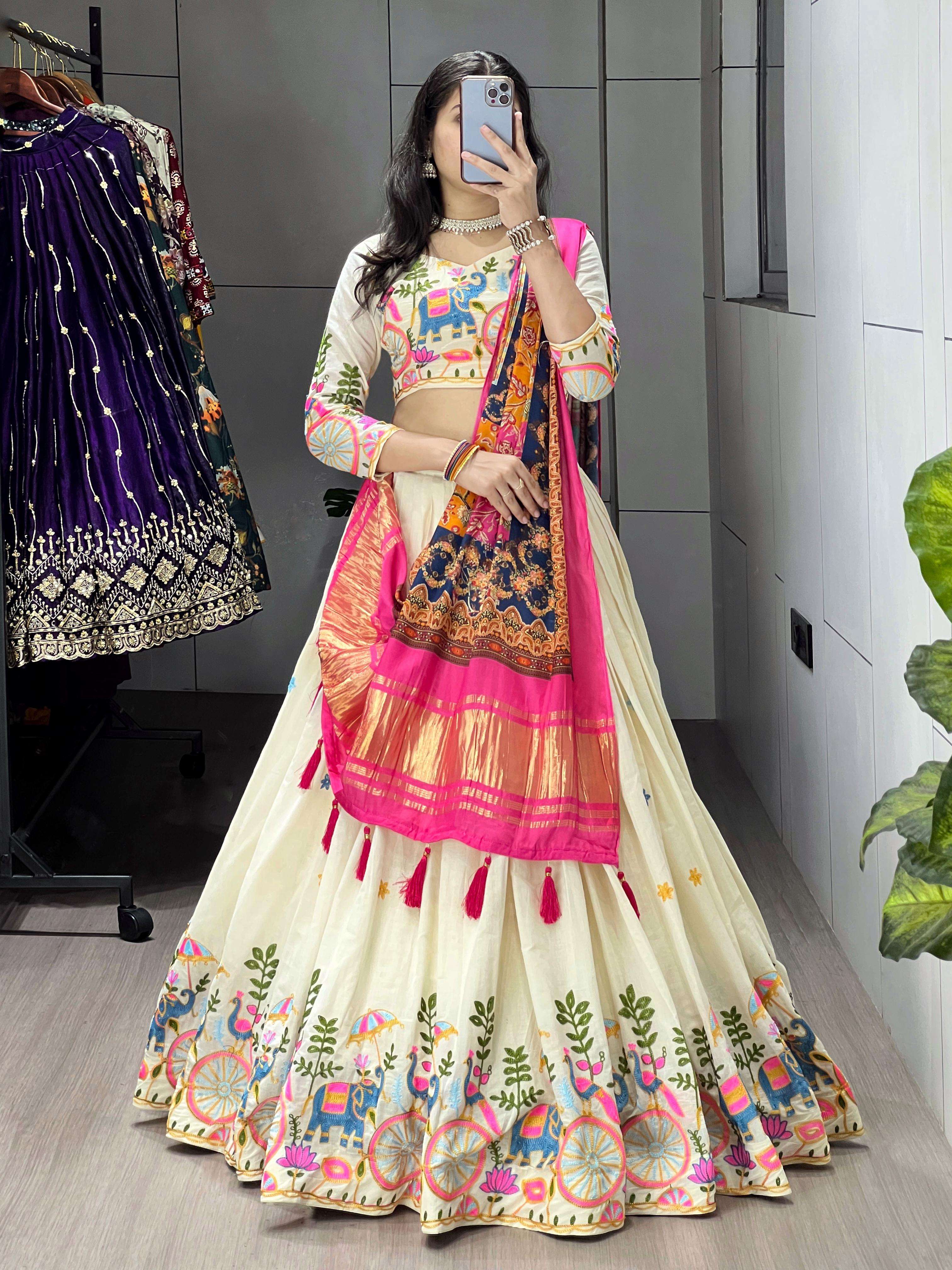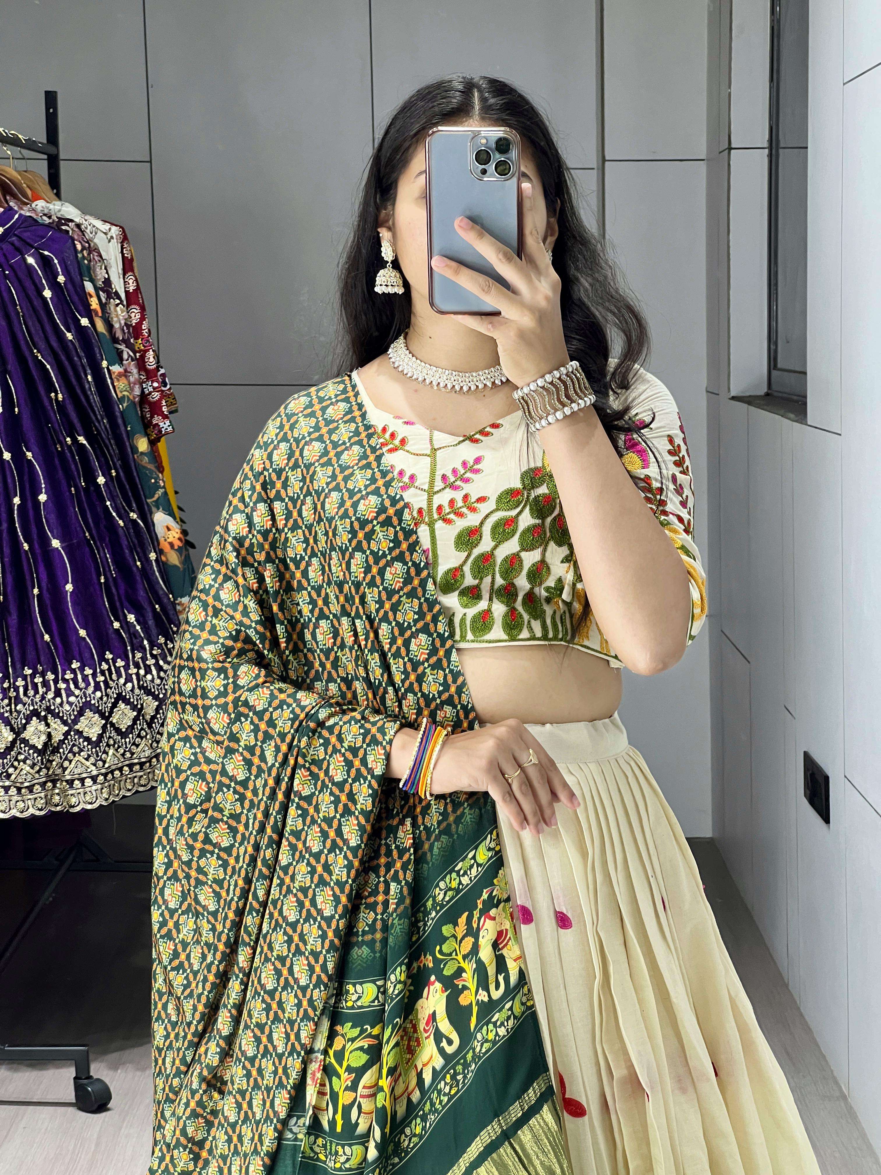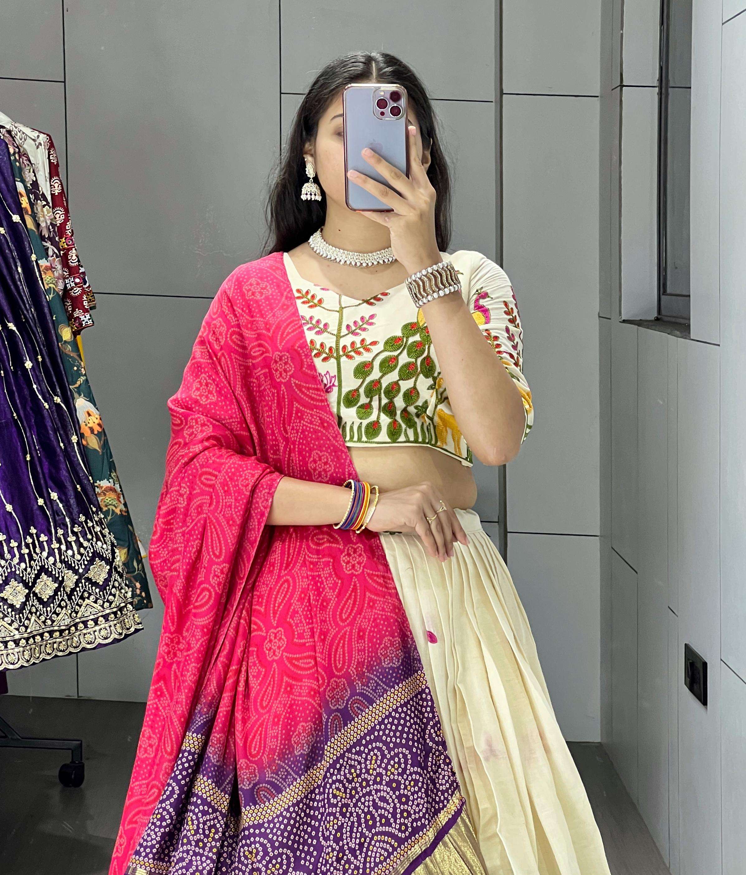Fully Stitched Cotton Embroidery Work Lehenga👜 ✨