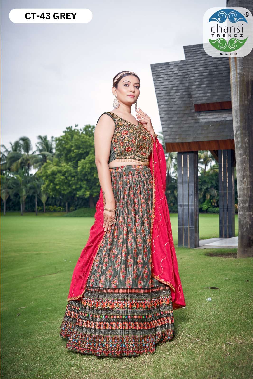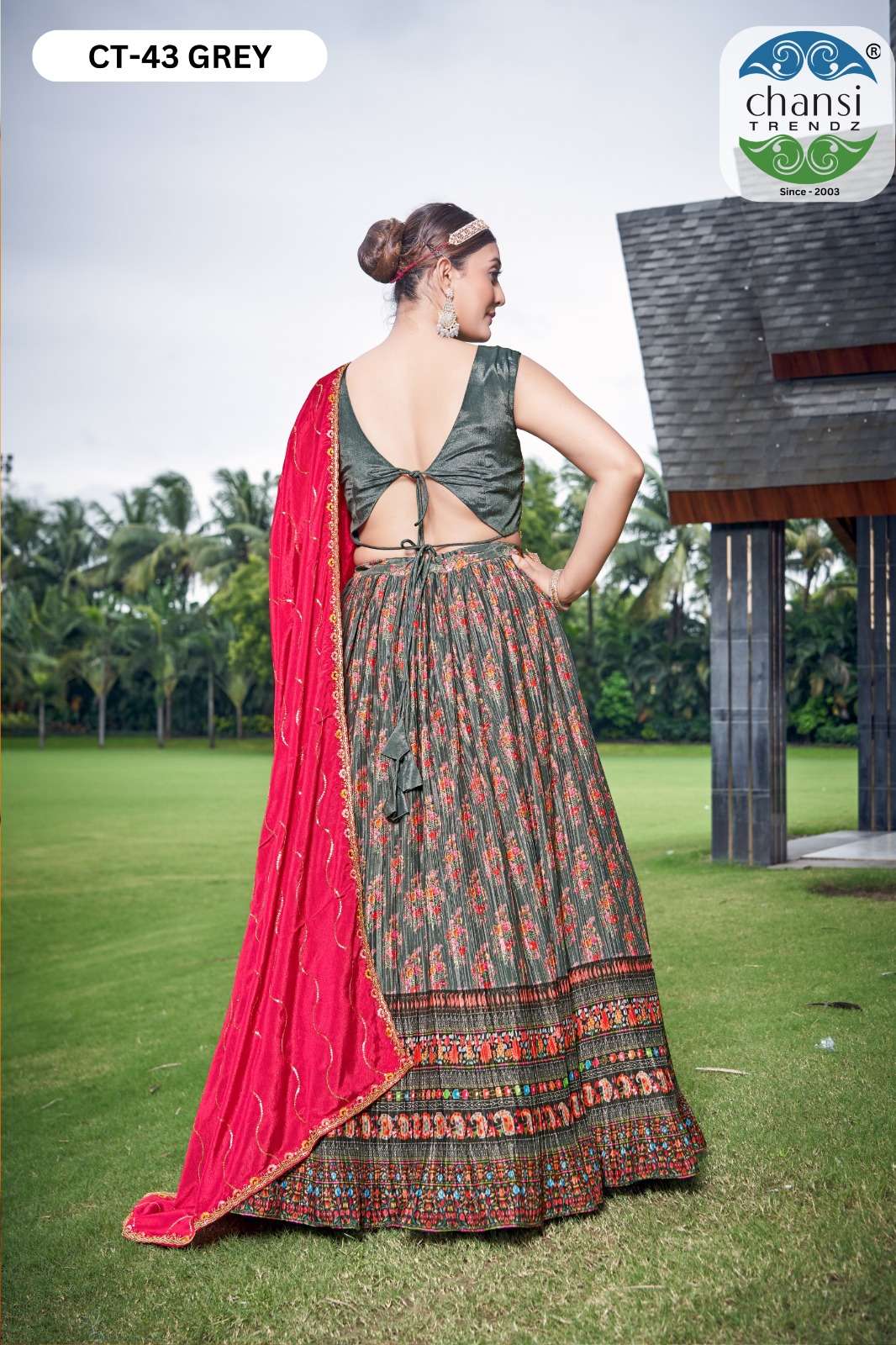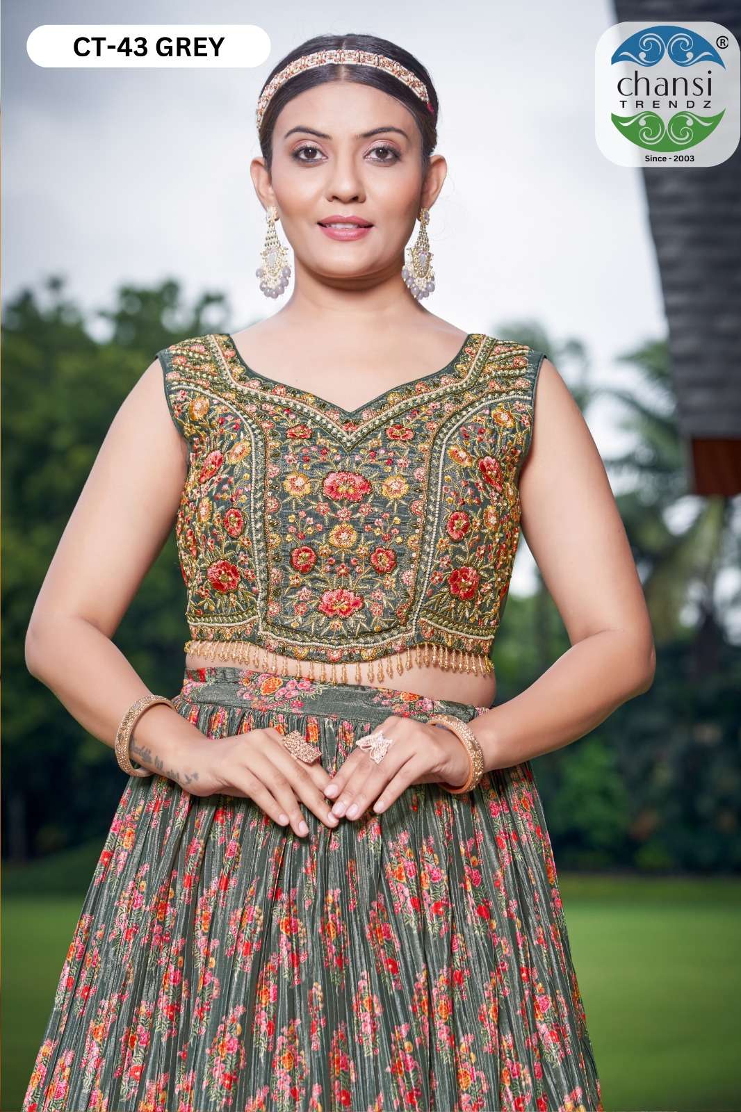 | Catalogue: | Crazy Cloths CT 43 GREY Chinon Designer Lehenga Choli with Dupatta |