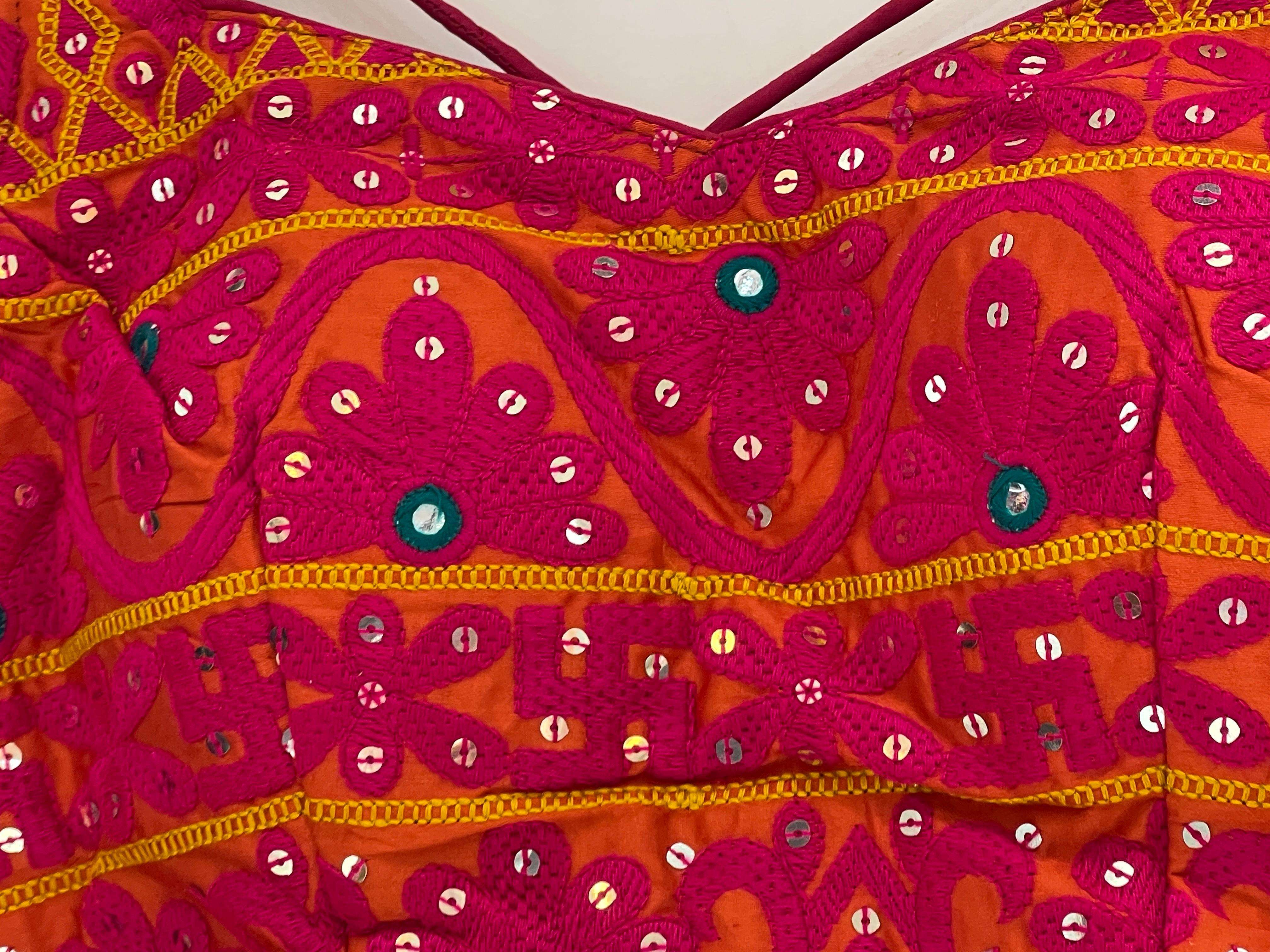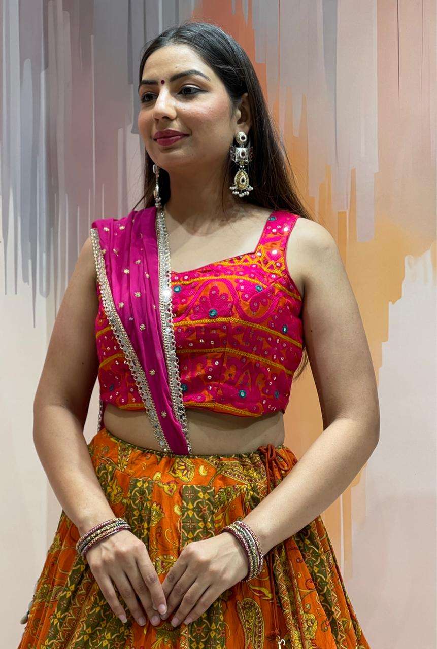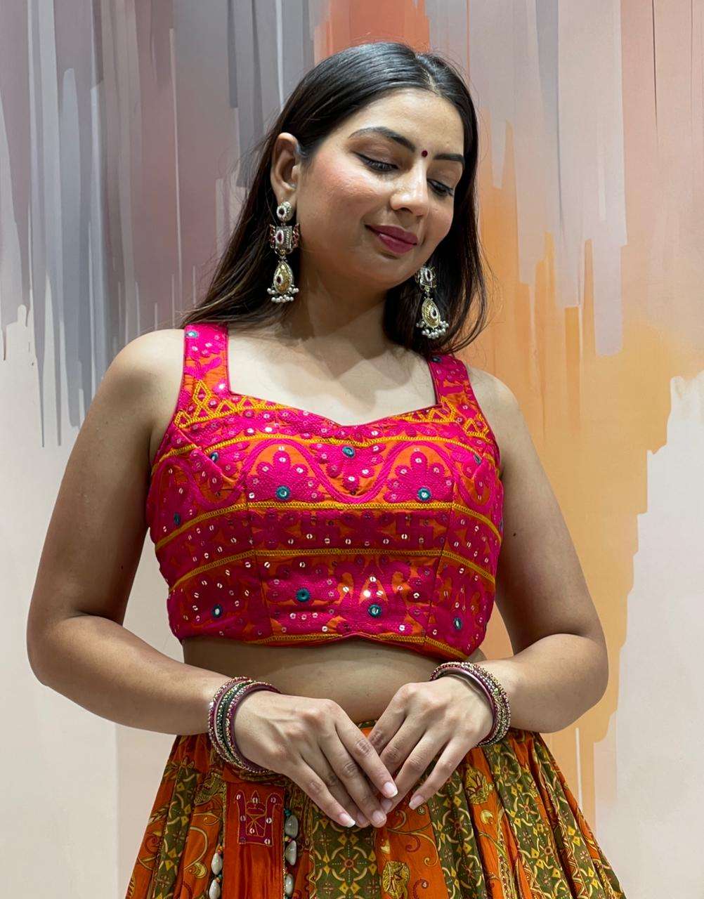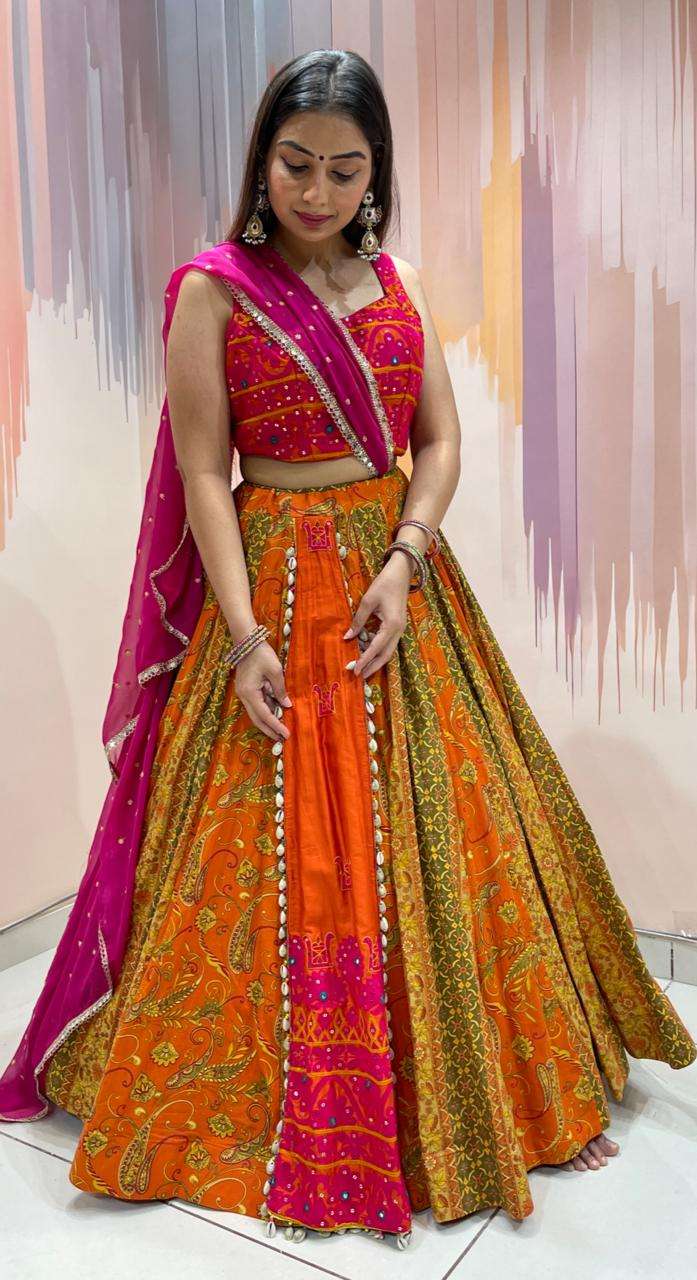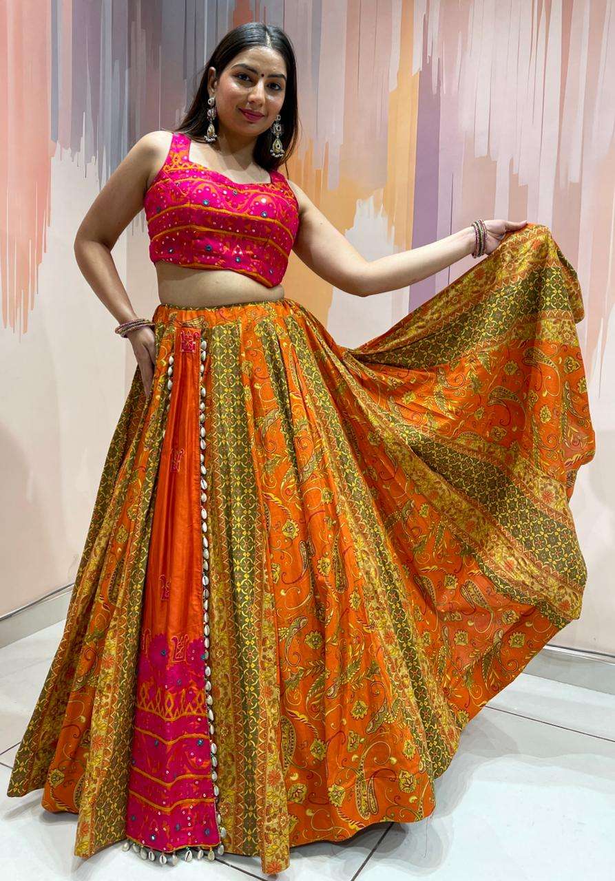 Absolutely Stunning Classic Vintage Printed with *Kodi work flap panel Amazing concept Kesariya Style Chaniya Choli*