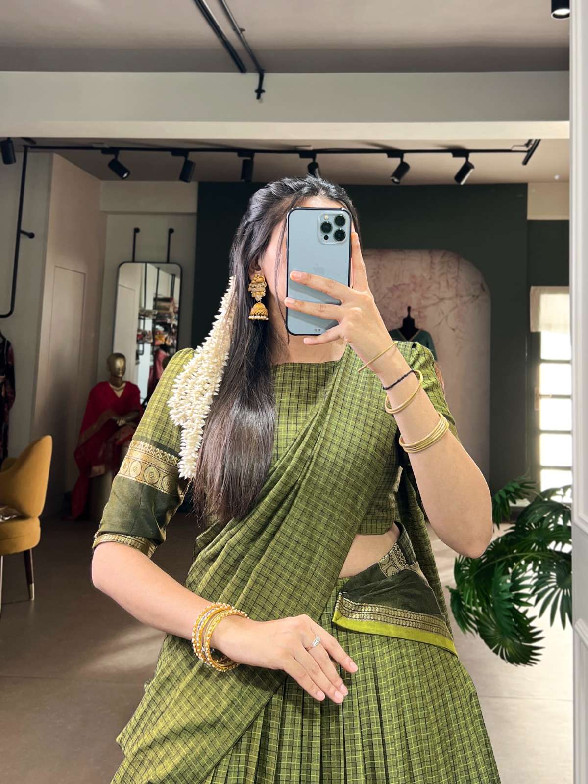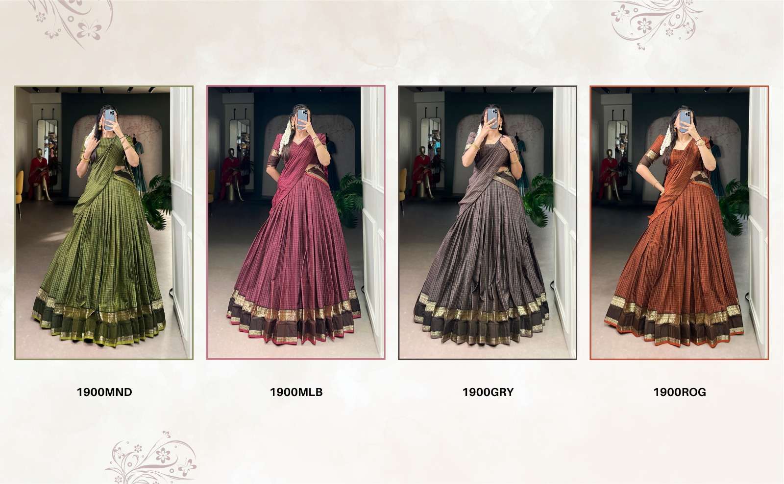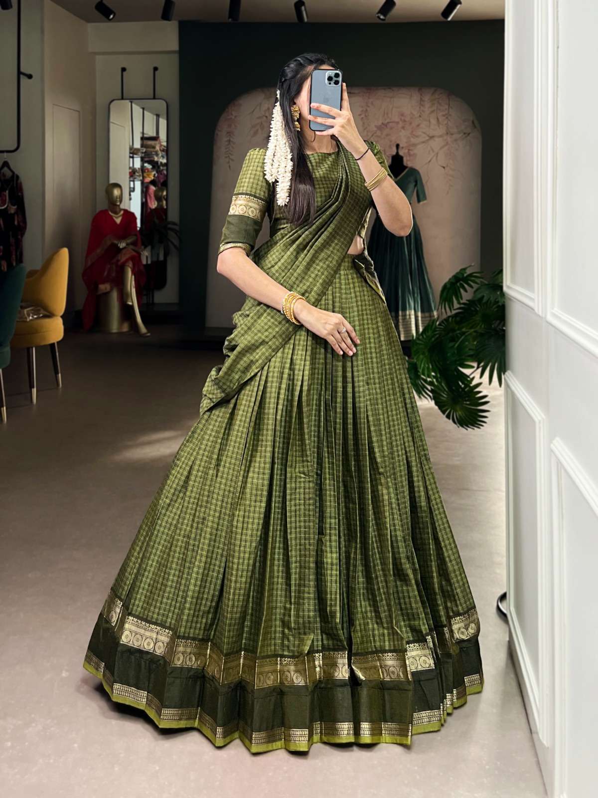 From its earthy tones to its intricately woven borders, every detail in this Chettinad cotton lehenga whispers tales of craftsmanship and timeless elegance