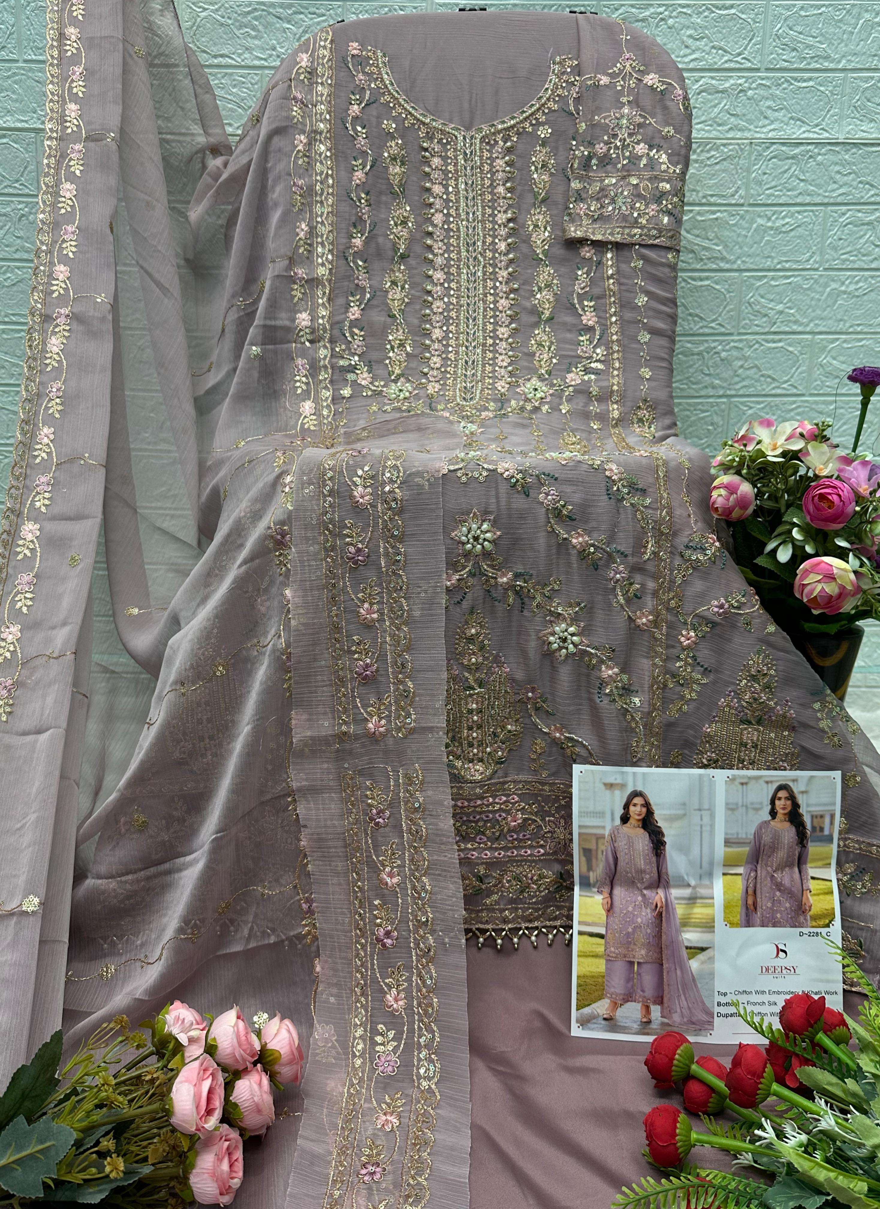 | Catalogue: | DEEPSY 2281 STUNNING CHIFFON KAHTLI & HAND EMBROIDERED SUIT FOR WEDDING |