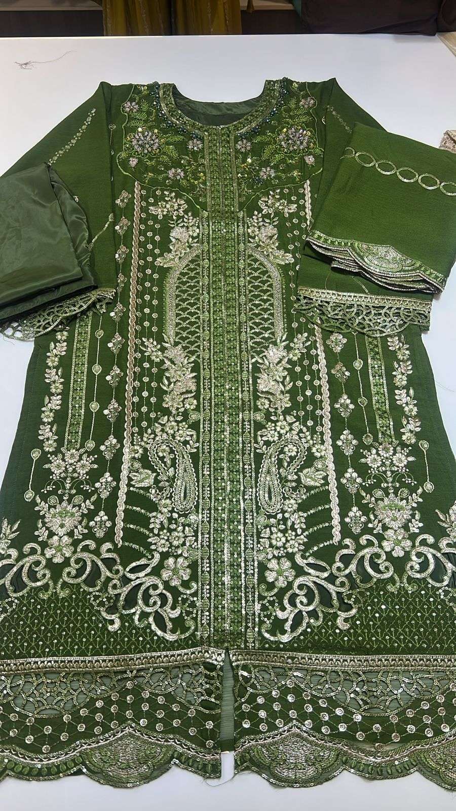 Top -Chiffon with embroidery cutwork & khatli work (semi stich)