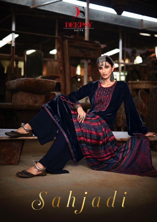 Deepsy Suits Presents Sahjadi 11401 - 11406 Series Pure Velevt With Embroidery Fancy Designer Heavy Salwar Suit Collection